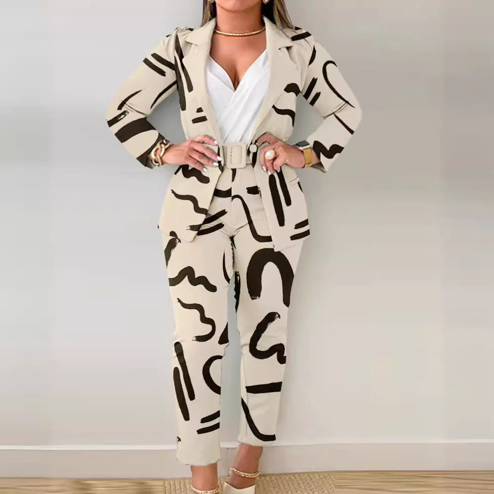 Opdag det stilfulde og elegante dametøjs sæt fra Stilla, der er ideelt til forskellige anledninger. Dette vidunderlige sæt kombinerer en moderne blazer med et matchende par bukser, der imponerer med et unikt håndskrevet trykmønster. Perfekt til kontoret, særlige anledninger eller glamourøse begivenheder.