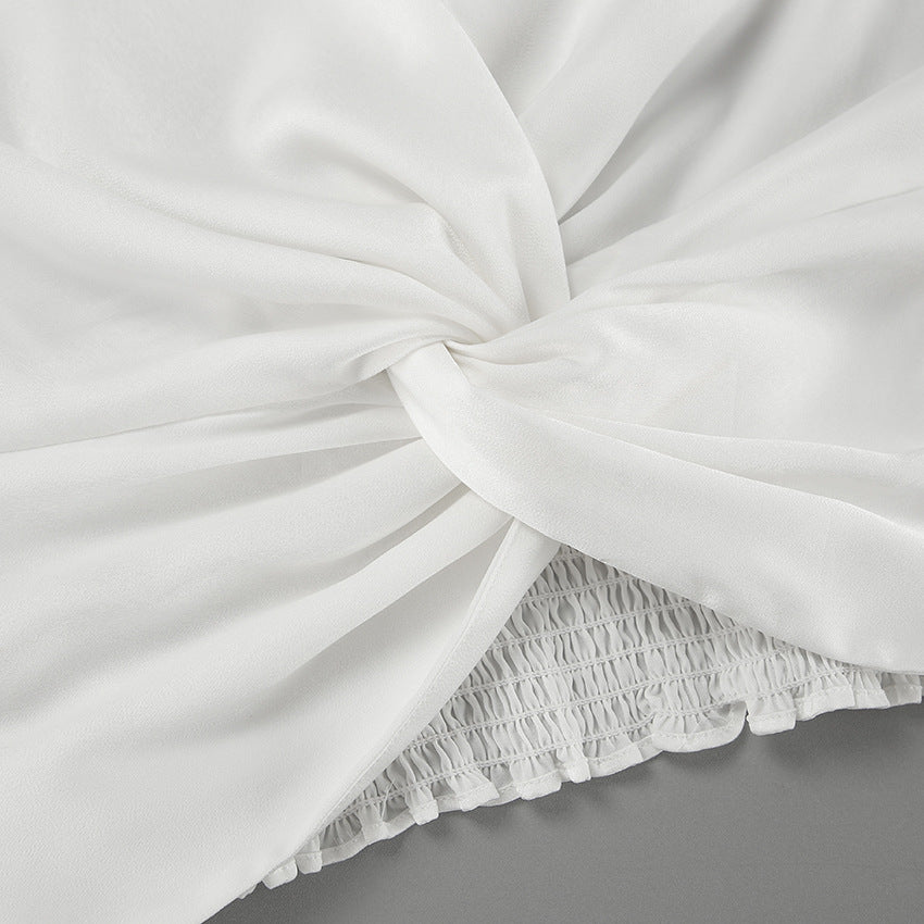 Opdag vores elegante, knudeformede top med voluminøse ærmer, der er perfekt til særlige lejligheder eller til hverdag. Dette top kombinerer stil og komfort på en uforlignelig tiltalende måde.