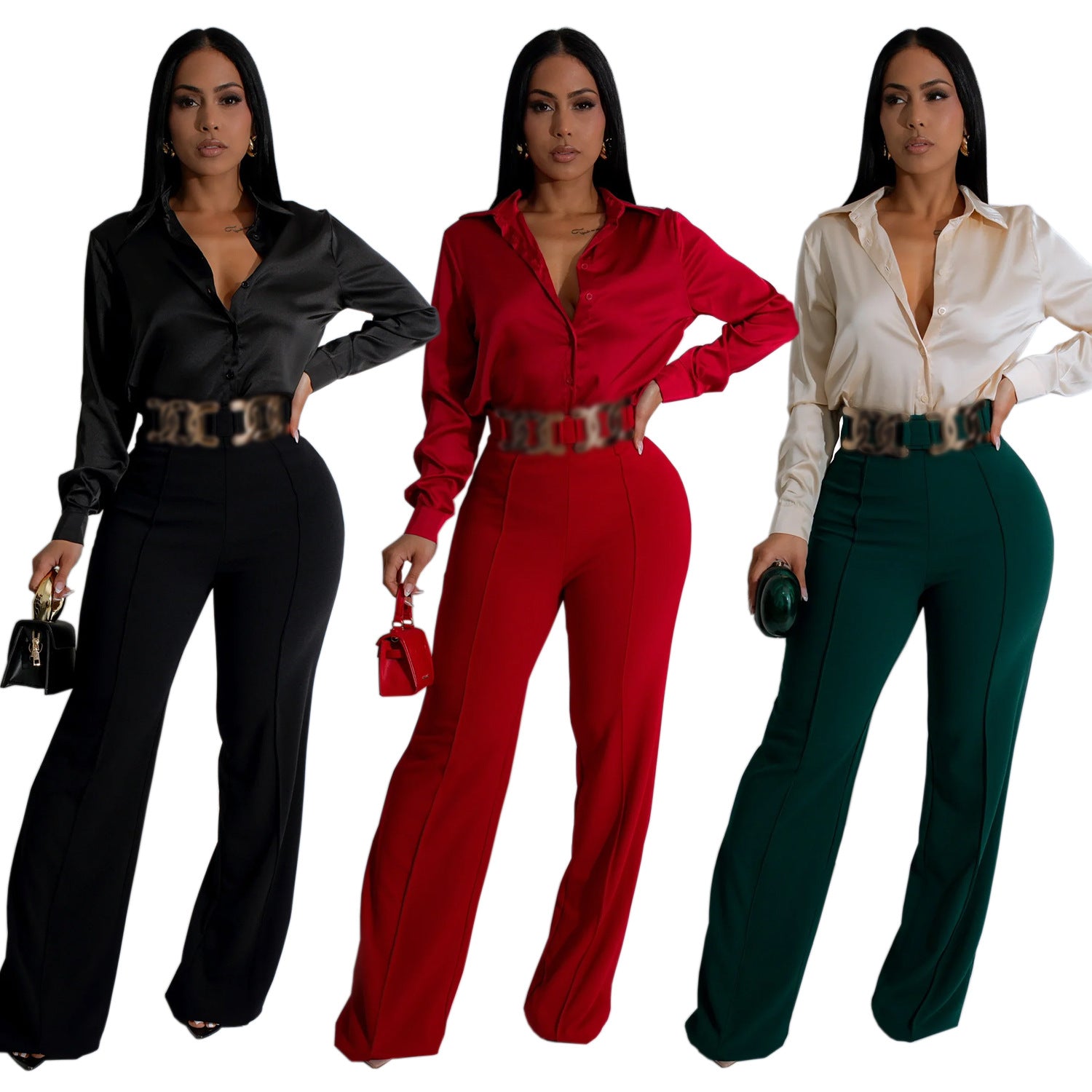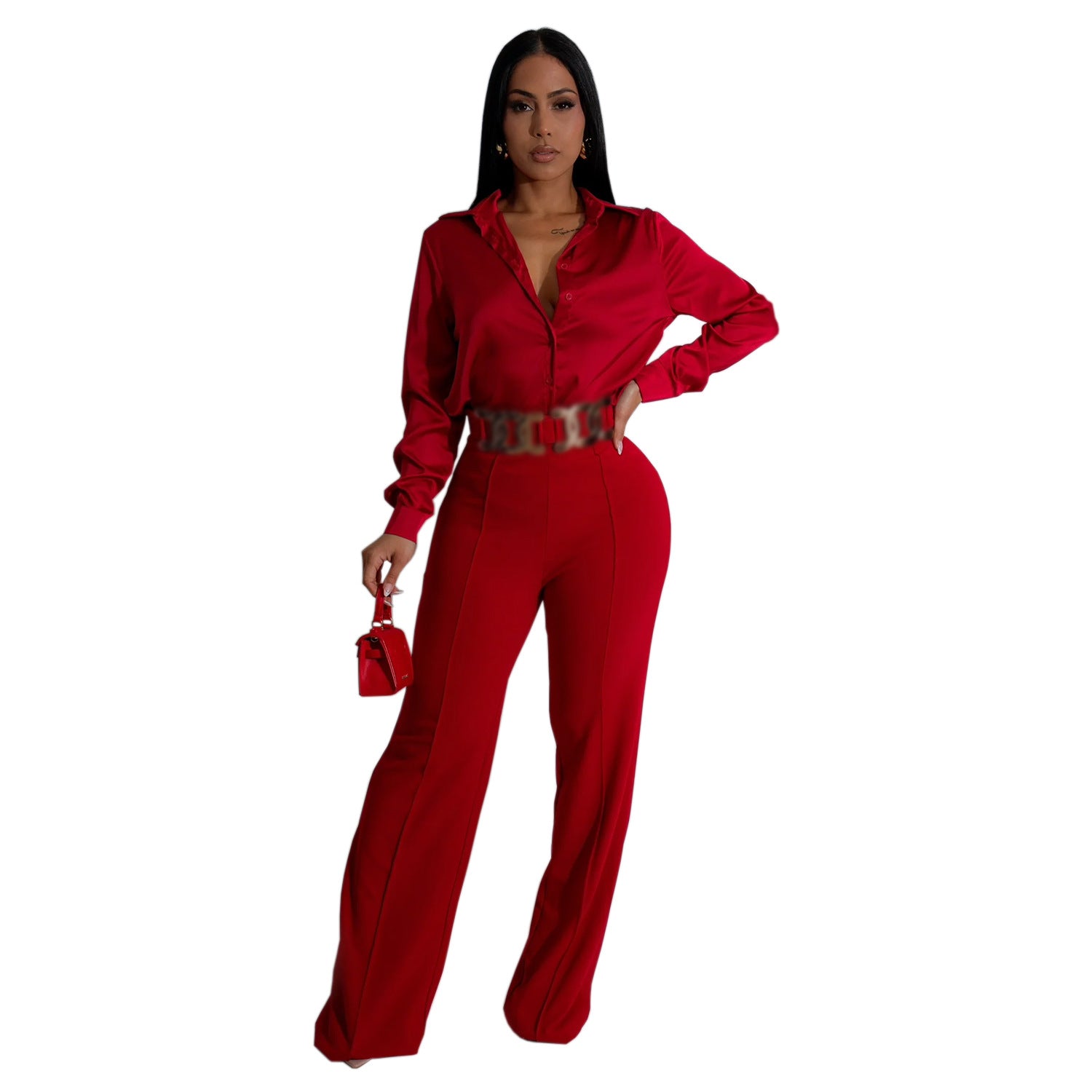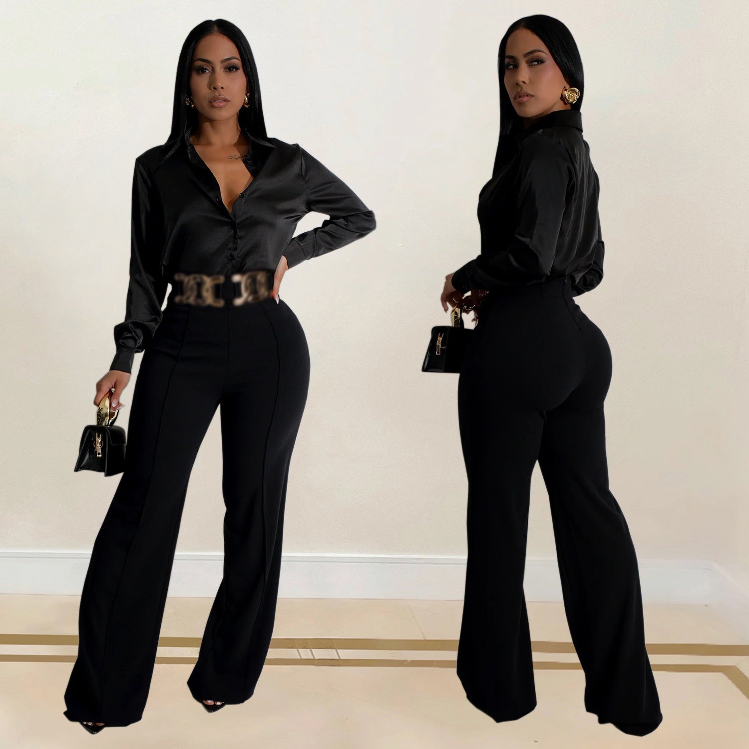 Det Elegante Bluse- og Bukse-Sæt fra Stilla forener stil og komfort i perfekt harmoni. Hele outfitkombinationen er ideel til formelle anledninger eller elegante aftenarrangementer.