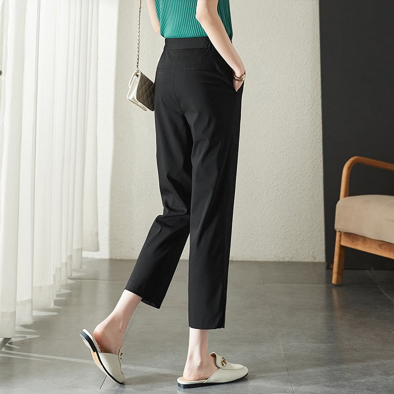 Opdag den perfekte kombination af stil og komfort med vores elegante damerbukser. Disse bukser imponerer med deres høje talje og den moderne, smalle pasform, der skaber en slank silhuet. Ideel til kontoret, særlige lejligheder eller en afslappet middag.