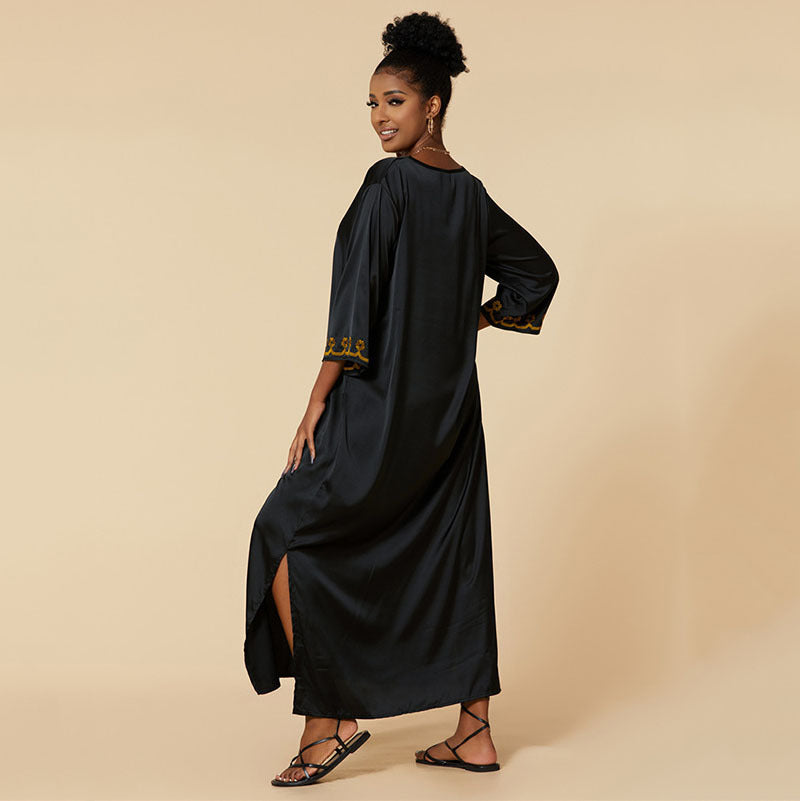Ideel til varme sommerdage på stranden eller afslappede aftener udendørs. Kombiner denne kaftankjole med dine yndlingssandaler eller iøjnefaldende accessories for et perfekt look.