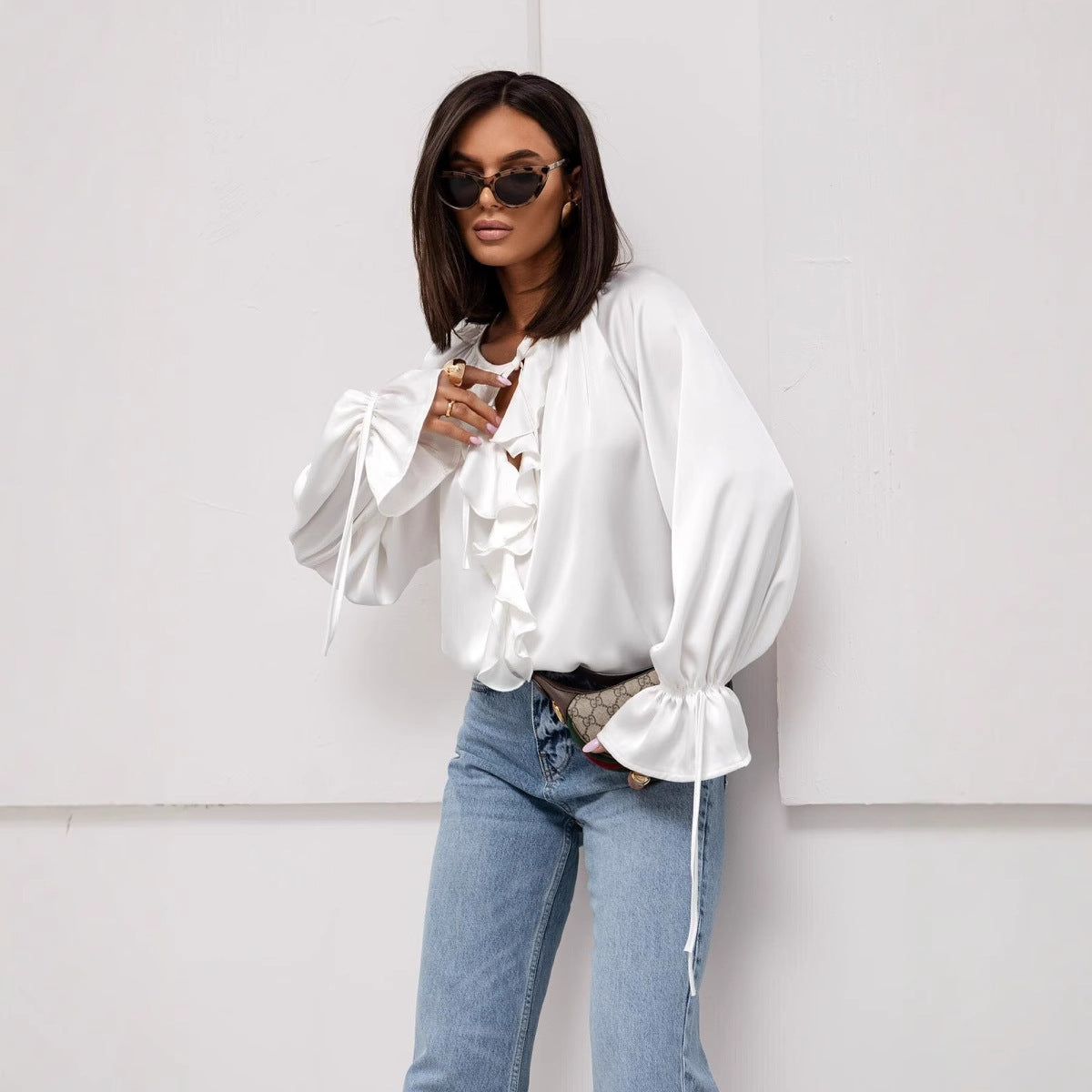 Tilføj et strejf af stil til din garderobe med denne elegante rynkebluse fra Stilla!