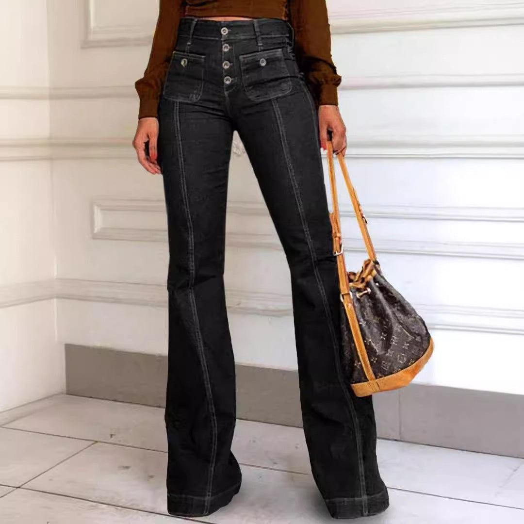 Vores dames højtaljede flared jeans er must-have for modeelskere. Disse jeans forener klassisk flair med moderne detaljer og er ideelle til enhver lejlighed.