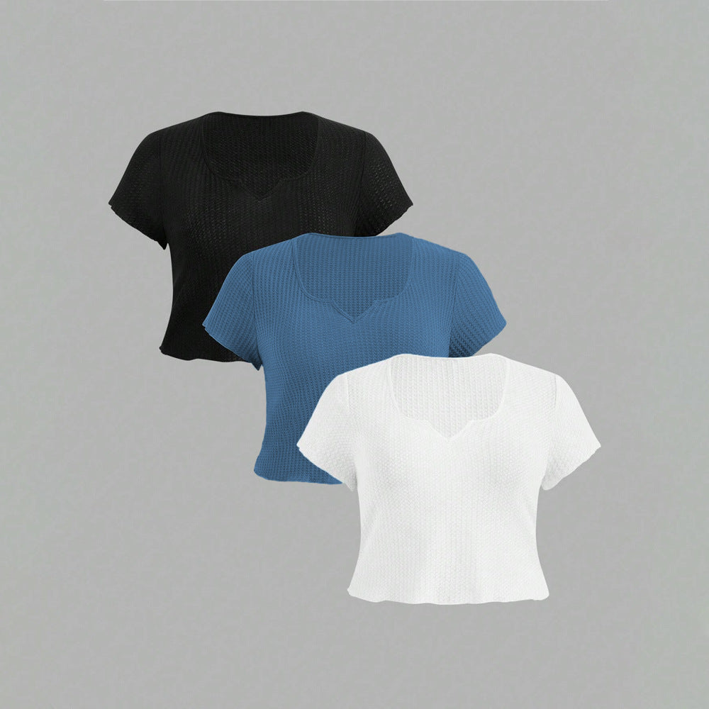 Opdag vores elegante damers kortærmede V-hals top med en bemærkelsesværdig struktureret tekstur, perfekt til afslappede anledninger eller det daglige outfit. Denne top imponerer med sin fashionable skæring og tilbyder maksimal komfort.