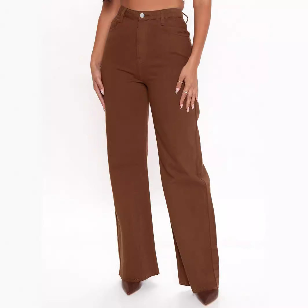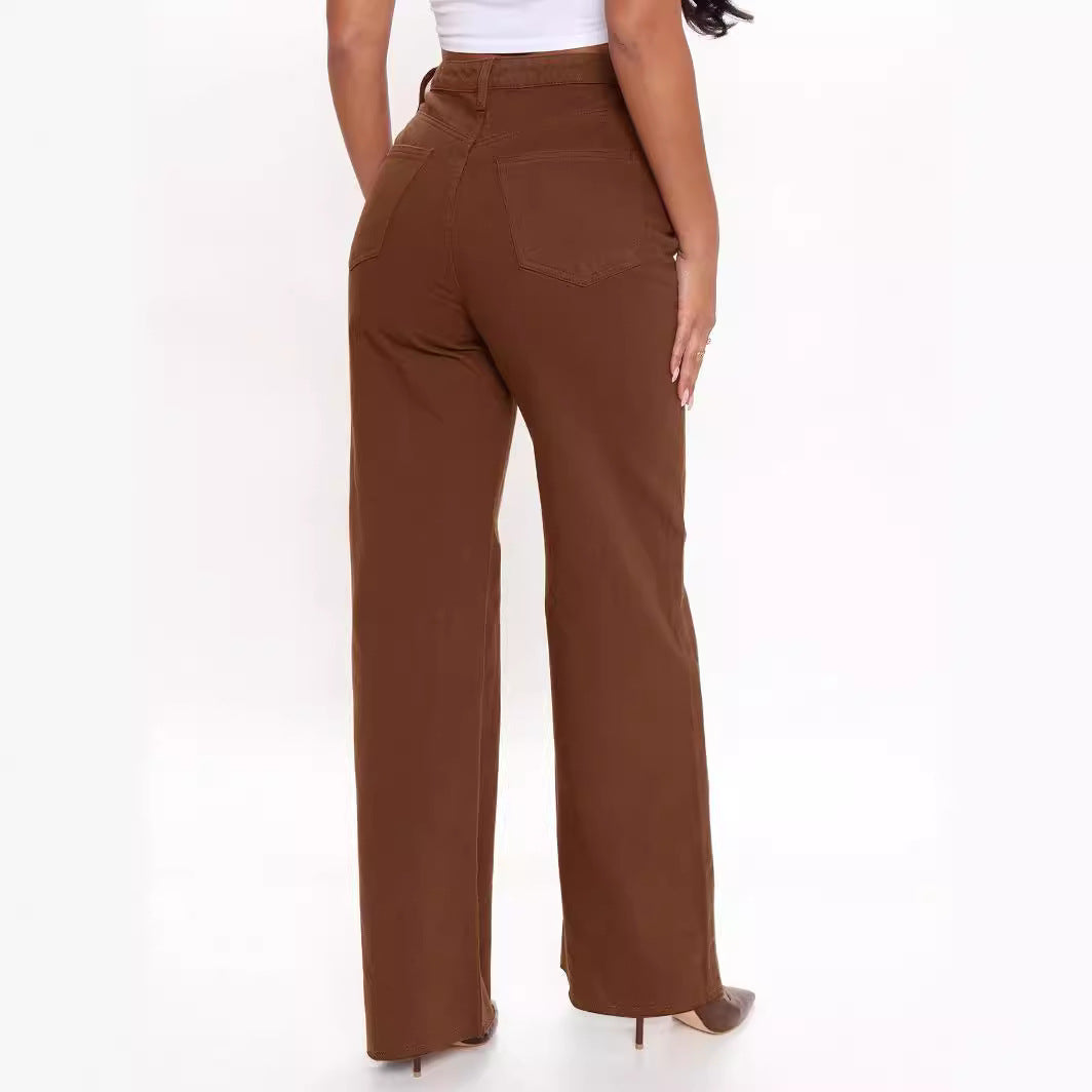 Opdag vores stilfulde damejeans med høj talje, der perfekt kombinerer komfort og stil. Bukserne har en afslappet, bred pasform, der skaber en tiltalende silhuet. Fremstillet af højkvalitets, slidstærk denim, sikrer den en behagelig bæreoplevelse hele dagen.