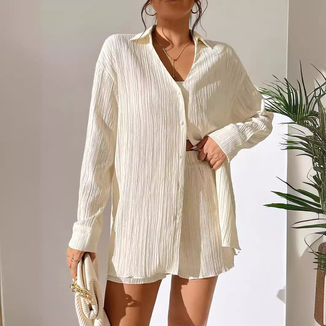Opdag den perfekte kombination af stil og komfort med vores afslappede skjortebluse til damer. Denne eksklusive bluse er lavet af kvalitetsstruktureret stof, der ikke kun giver et moderne udseende, men også en behagelig bærekomfort.