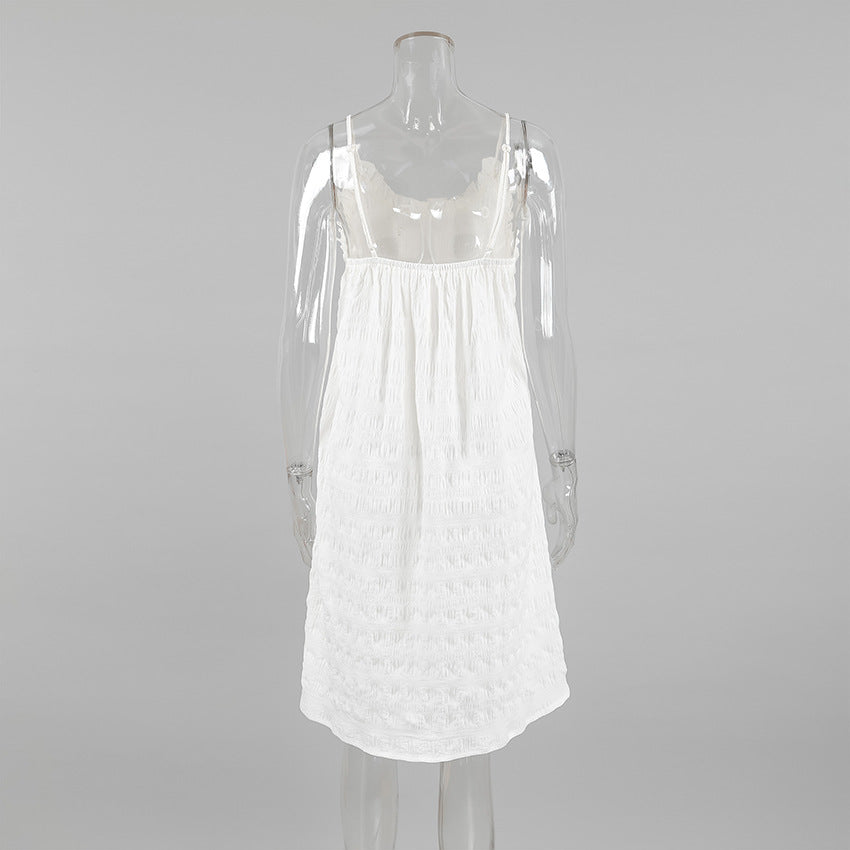 Opdag vores charmerende og luftige spaghetti-strop natkjole fra Stilla, ideel til afslappede nætter og varme sommerdage. Denne natkjole imponerer med sit elegante flæsemønster, der ikke kun giver et legende udseende, men også maksimal komfort.
