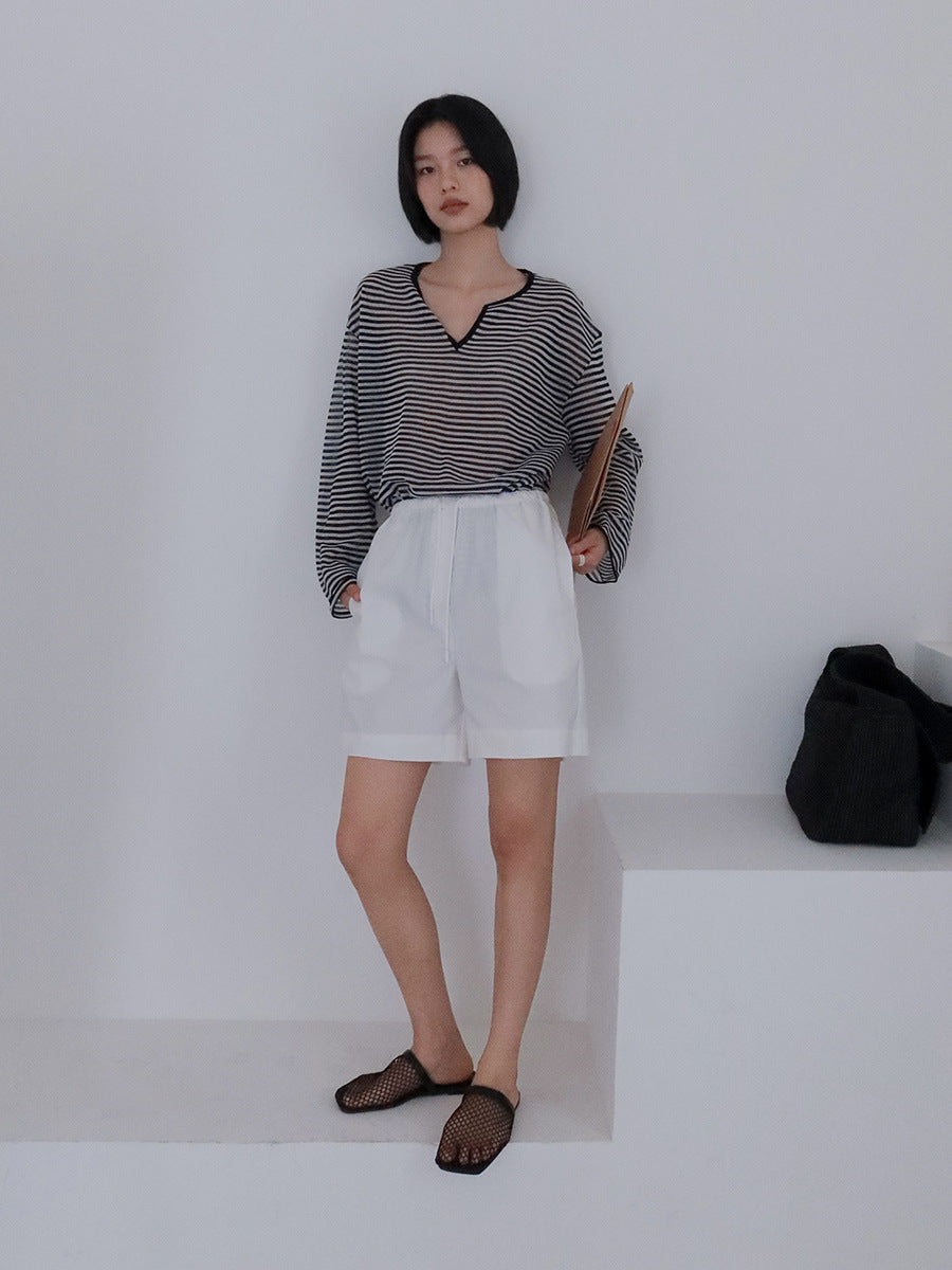 Vores dame casual shorts med elastisk talje er den ideelle ledsager til varme dage. Fremstillet af let, åndbart materiale, tilbyder de en førsteklasses bærekomfort og et stilfuldt udseende.