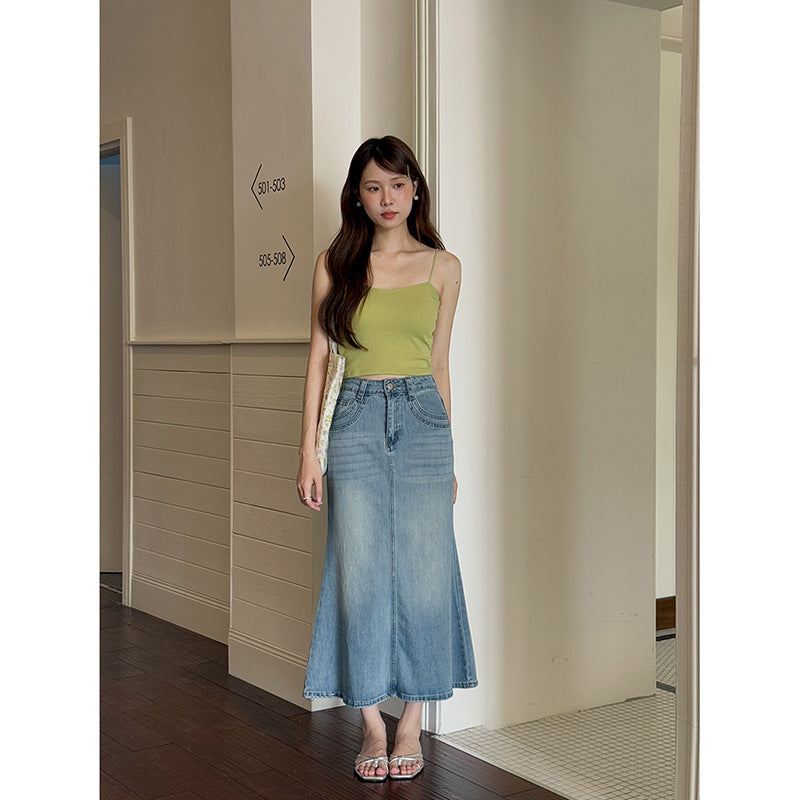 Det klassiske denim-look sikrer, at denne midi-nederdel aldrig går af mode. Den er den ideelle ledsager til en afslappet indkøbsdag eller et møde med venner. Kombiner den med vores afslappede t-shirt eller en smart bluse for at understrege din individuelle stil.