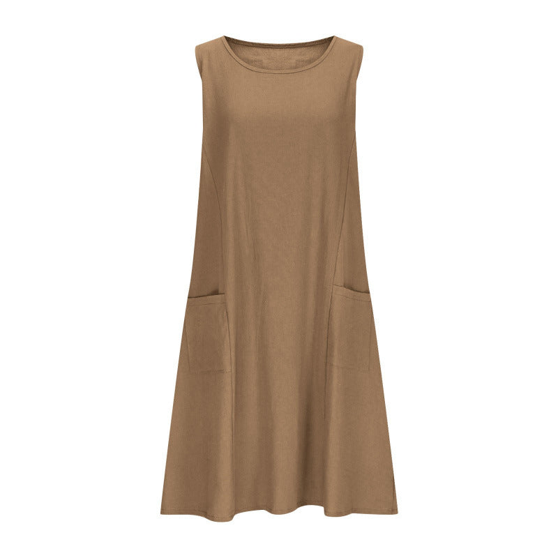 Vi præsenterer det bedste inden for afslappet mode, A-linje ærmeløs fritidskjole fra Stilla. Designet til komfort og lethed, tilbyder denne kjole en flatterende A-linje silhuet, der smukt falder over kroppen og gør den perfekt til enhver afslappet lejlighed eller til at slappe af derhjemme.