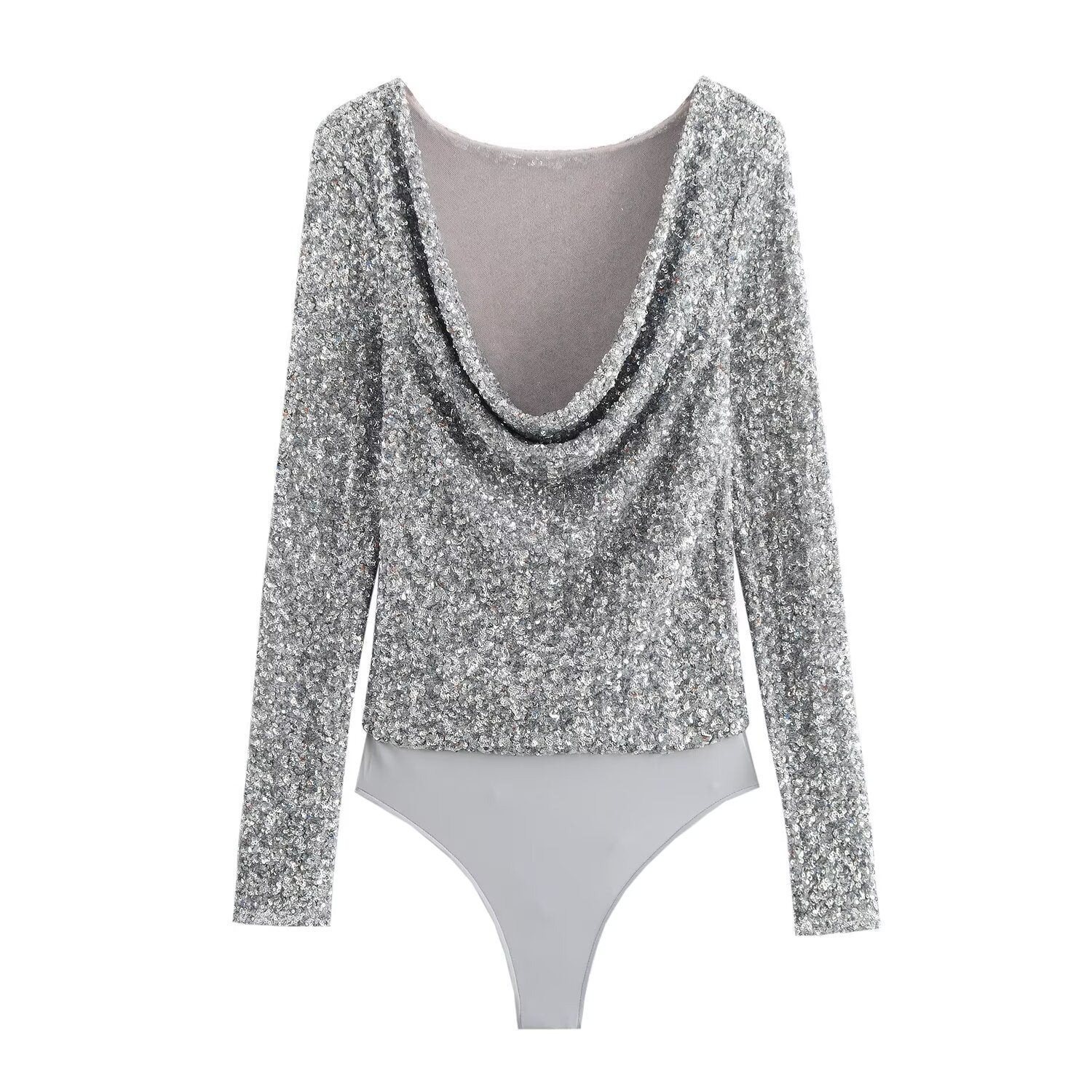 Træd ind i rampelyset med vores fantastiske Dazzling Cowl Neck Bodysuit, der er designet til at berige din garderobe til enhver anledning. Dette eksklusive stykke kombinerer elegance og moderne flair og tilbyder et skinnende stof, der smukt fanger lyset.