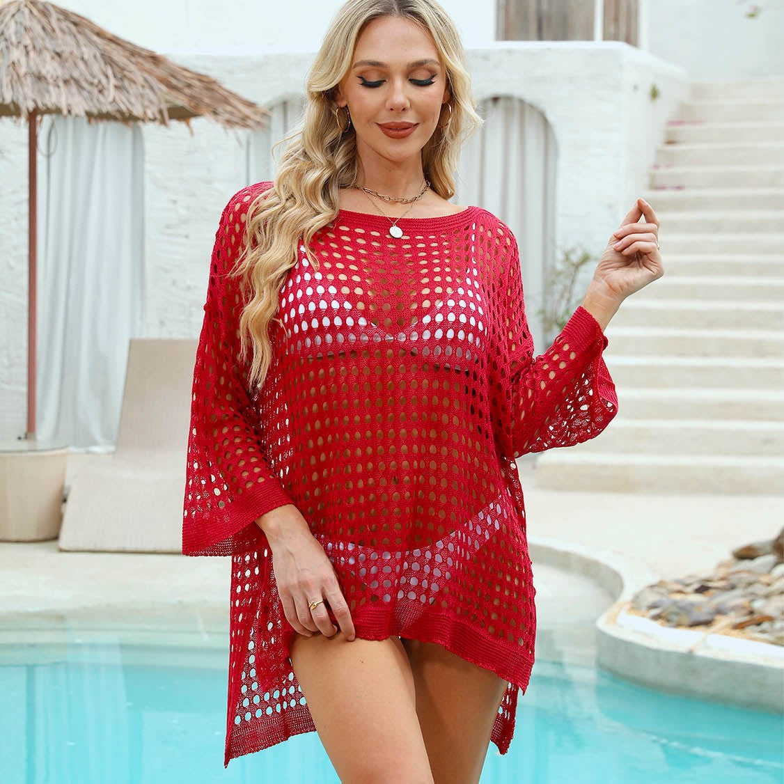 Vi præsenterer det perfekte supplement til din strandgarderobe! Denne Femme Åbne Strik Strandoverdel Tunika er designet til de solbeskinnede dage ved poolen eller stranden. Fremstillet af let, åndbart stof har den et komplekst åbent strikmønster, der muliggør maksimal luftstrøm, mens du nyder solen.