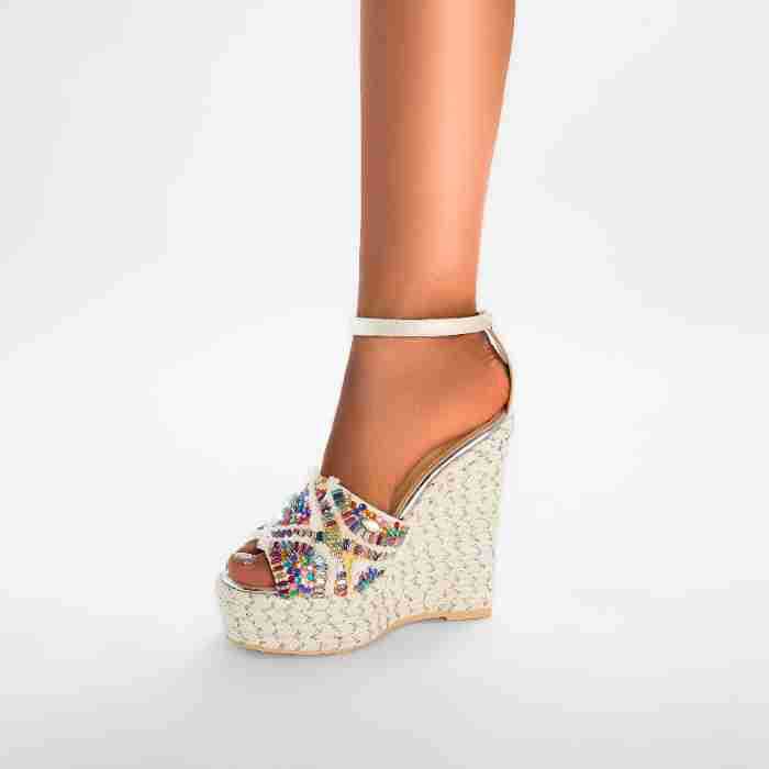 Opgrader din skoesamling med vores fantastiske dekorerede kile sandaler. Perfekte til varme vejrsudflugter, kombinerer disse sandaler ubesværet komfort og stil. Designet med en smart vævet platform, giver de en behagelig højde uden at gå på kompromis med stabiliteten.