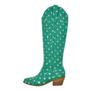 Opdag den perfekte blanding af komfort og trend med vores Femme dekorerede knælange westernstøvler. Fremstillet til den moderne kvinde, der elsker at skille sig ud, har disse støvler imponerende dekorationer, der fanger øjet og giver dit garderobe et modepræget twist.