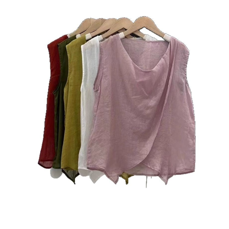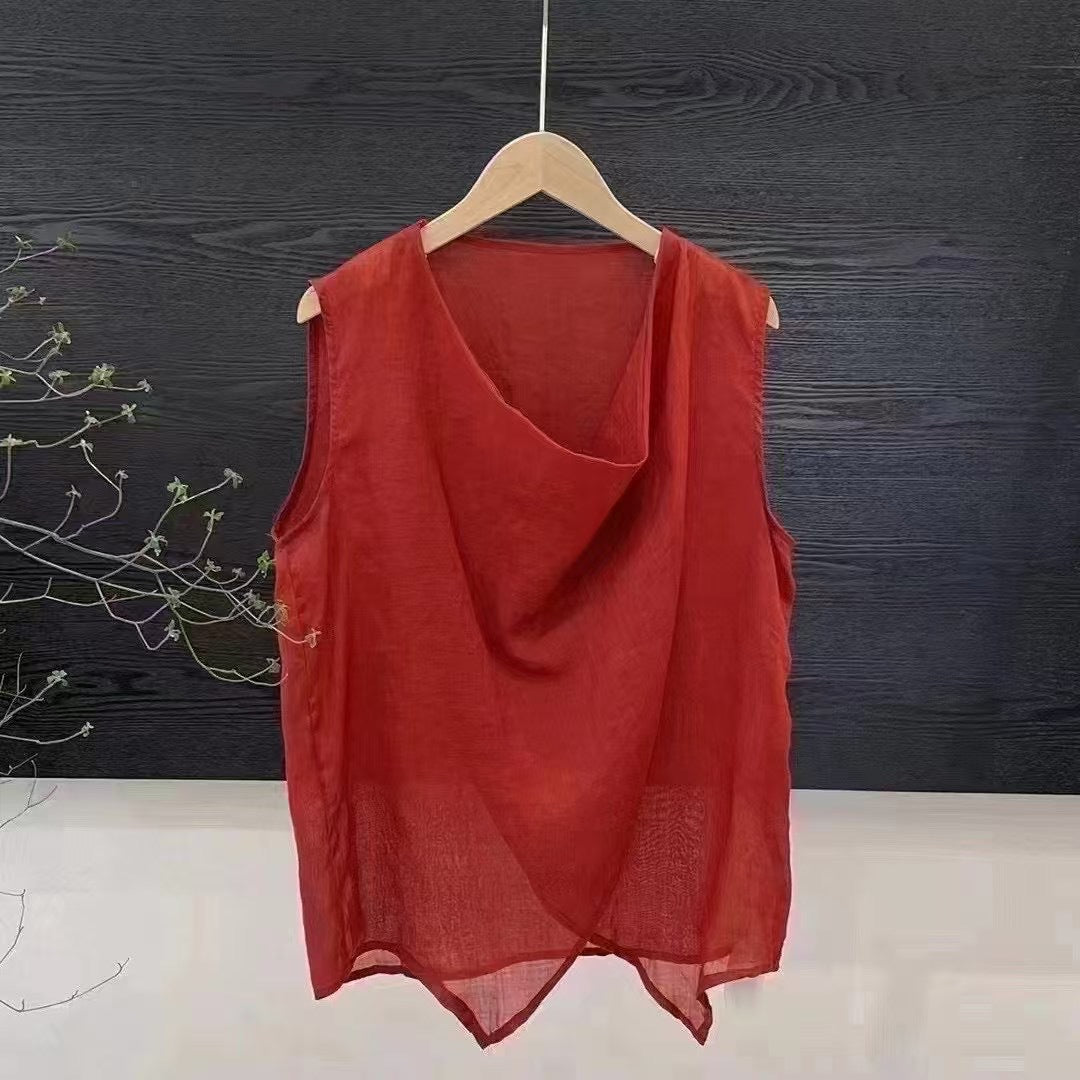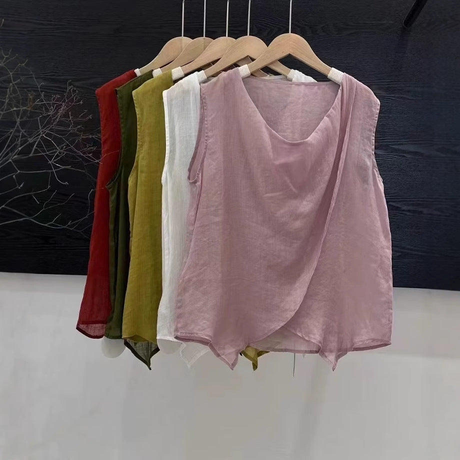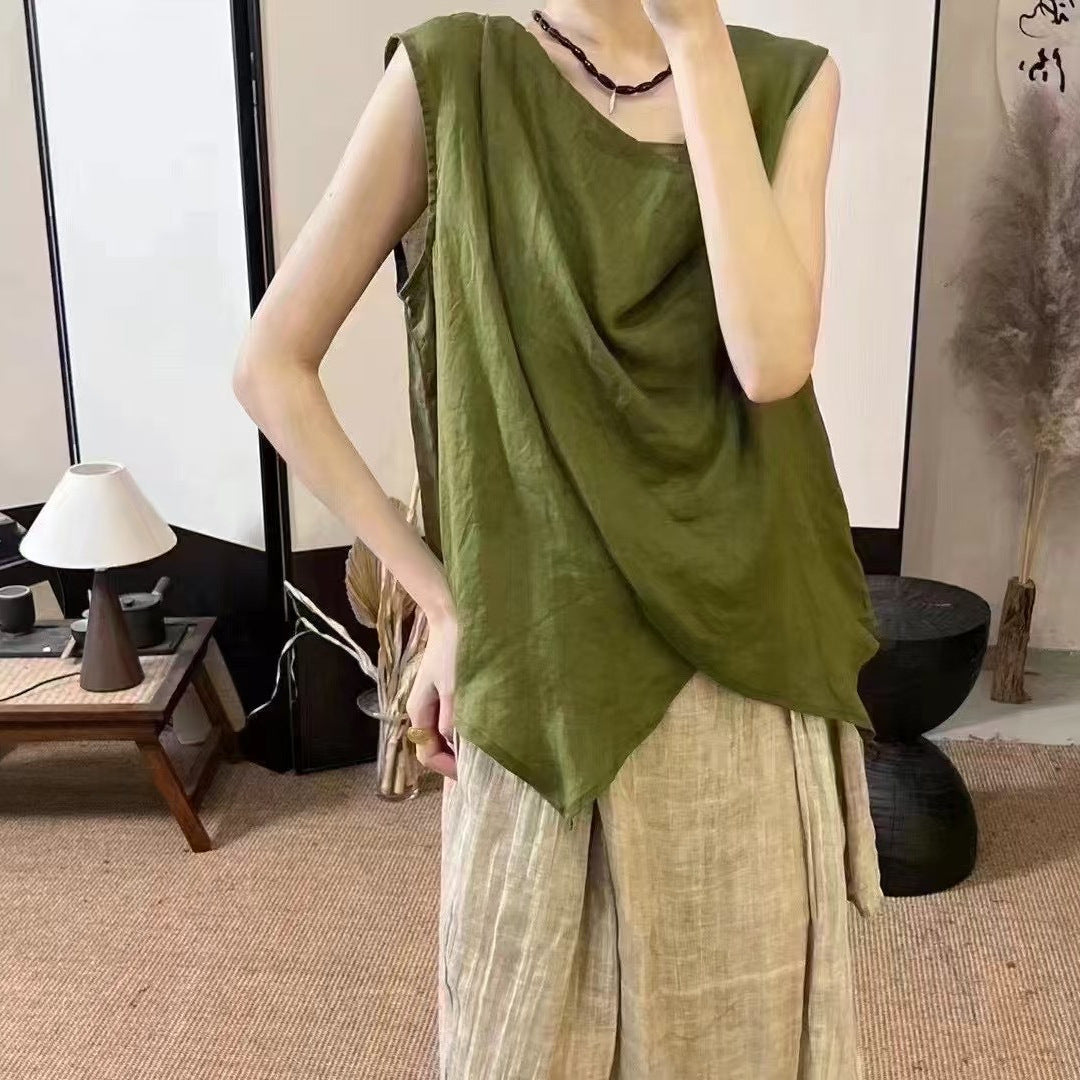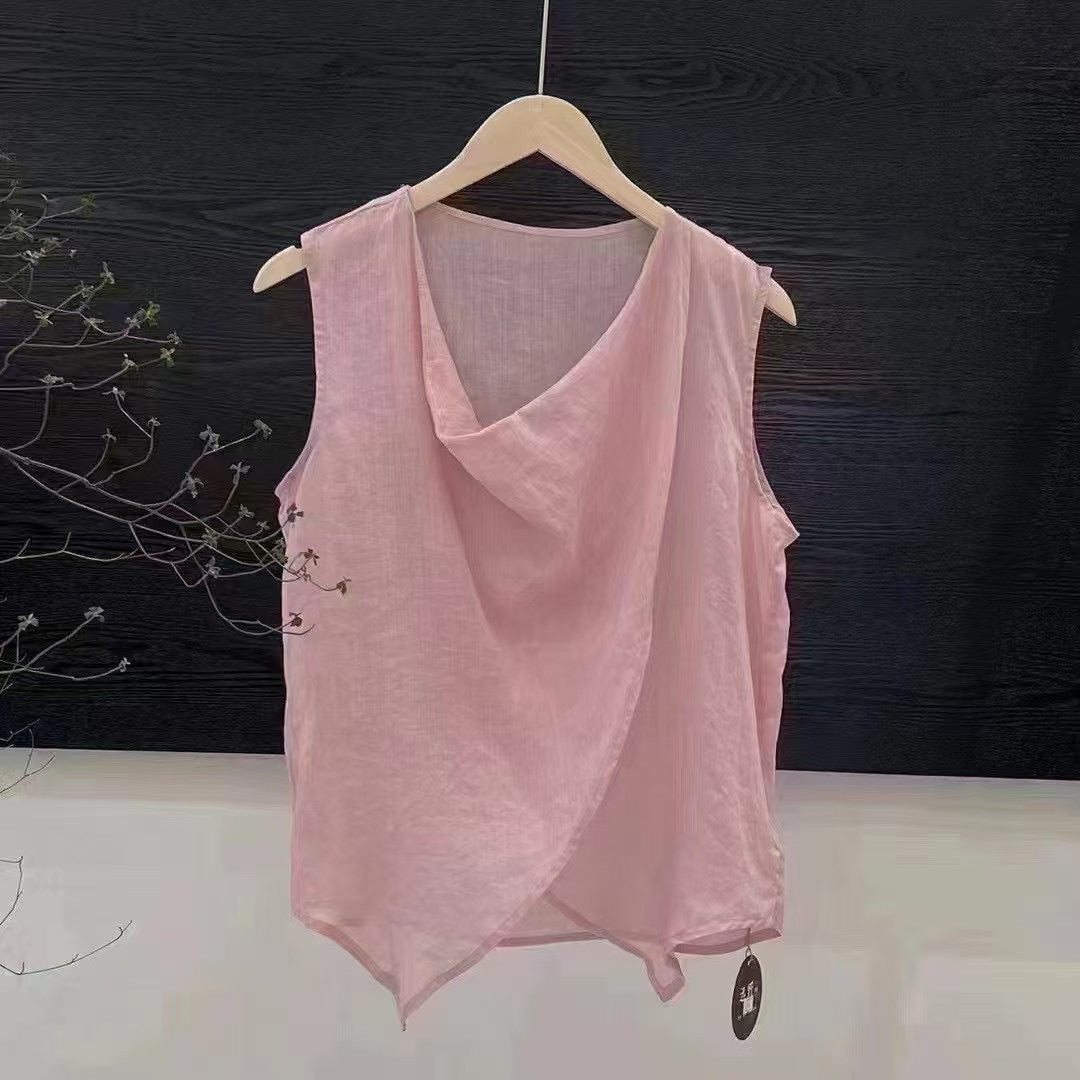 Giv dit hverdagslook med denne ærmeløse, draperede linnedtop et præg af raffinement, hvor komfort møder høj mode i et enkelt stykke.