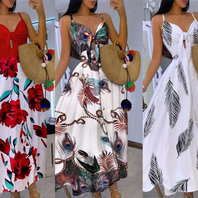 Fremstillet af høj kvalitets, åndbart stof, sørger den for maksimal komfort og får dig til at se stilfuld ud samtidig. Det iøjnefaldende print viser komplekse mønstre, der gør denne kjole perfekt til stranddage, sommerfester eller afslappede udflugter.