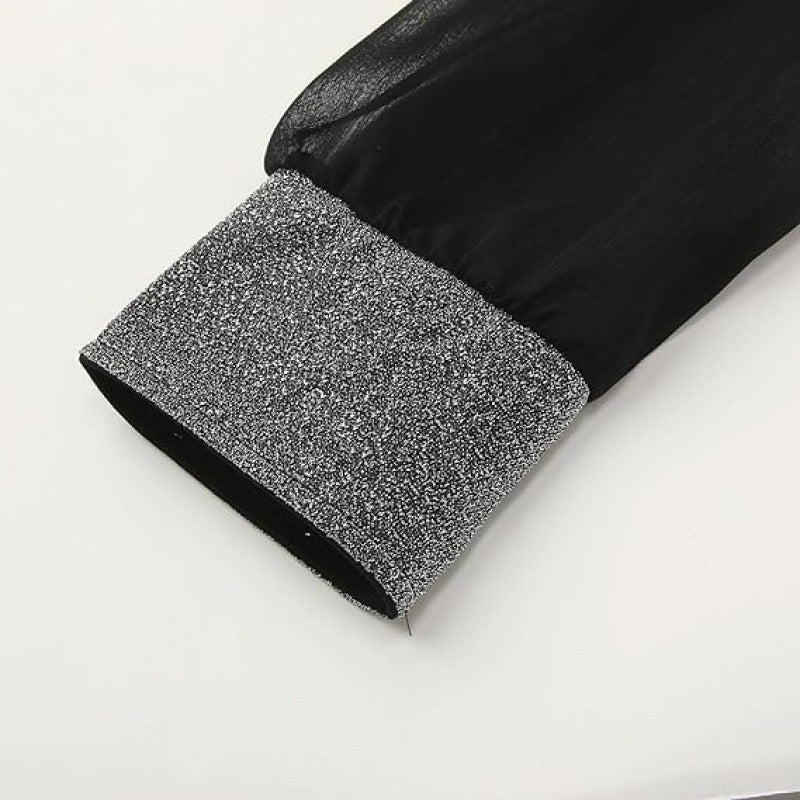 Vi præsenterer Femme Elegant Scalloped Mini Dress med gennemsigtige ærmer, en perfekt blanding af elegance og stil. Dette fantastiske minikjole har en moderne, bølget halsudskæring, der fremhæver din naturlige skønhed og er ideel til både afslappede udflugter og elegante anledninger.