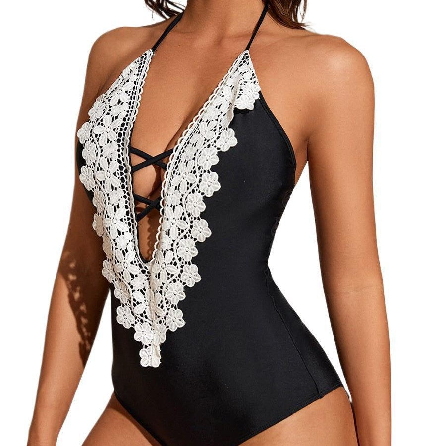 Femme Elegant Hæklebort Einteiler Stilla henvender sig til alle, der sætter pris på både moderne design og håndværkstradition. Med en udsøgt hæklebort, der tilfører et strejf af elegance, vil denne badedragt opgradere din sommergarderobe.
