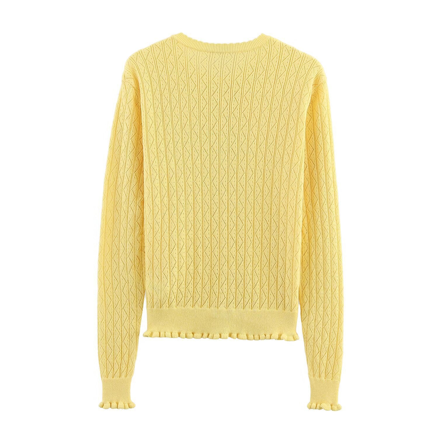 Opgrader dit garderobe med denne stilige cropped strikjakke, der både tilbyder stil og komfort. Perfekt til lag-på-lag, har dette stykke et charmerende struktureret mønster og legende flæsedetaljer, der forstærker dens visuelle tiltrækning.
