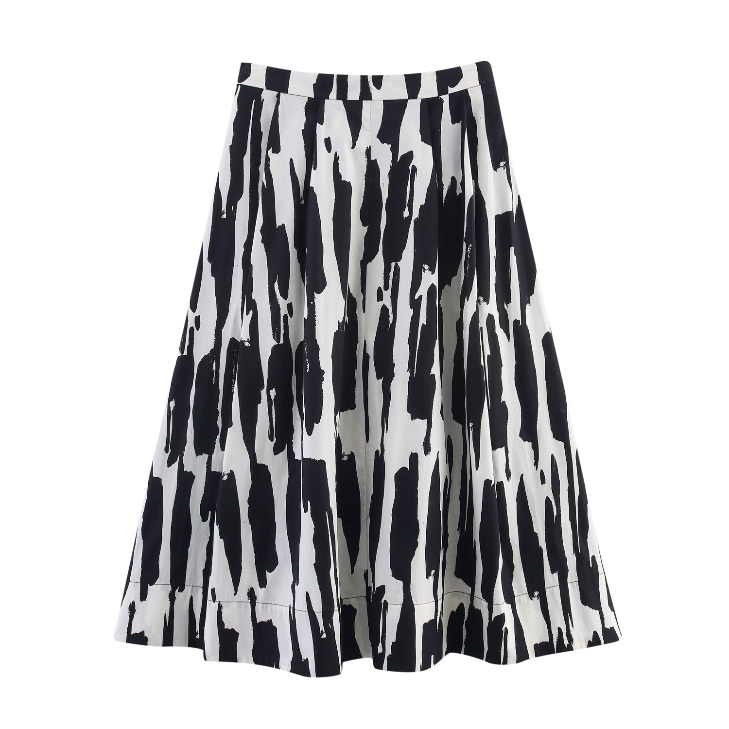 Denne smukke Femme A-linje midi-nederdel tilbyder en unik blanding af stil og komfort, perfekt til at gøre et statement ved enhver lejlighed. Med et livligt abstrakt print tilføjer denne nederdel et strejf af kunstnerisk flair til dit outfit og sikrer, at du skiller dig stilfuldt ud.