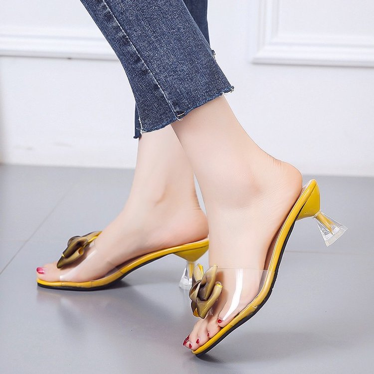 Opdag vores dames åbne Mules, der sætter stilfulde accenter samtidig med at de tilbyder den komfort, du har brug for. Med en unik gennemsigtig hæl og et charmerende sløjfe-design er disse Mules det perfekte valg til fashionable optrædener.