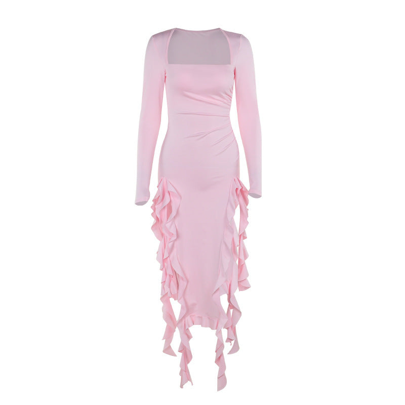 Sæt et modepræg, uanset hvor du er, i denne fremragende kjole, der forener stil og komfort. Berig din garderobe med Women's Elegant Asymmetrical Ruffled Midi Dress fra Stilla i dag!