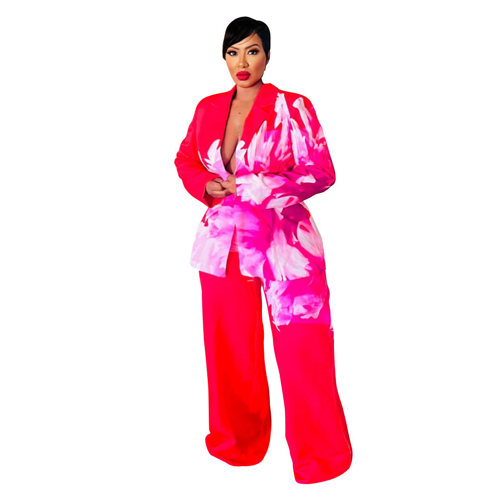 Dette eksklusive dames blazer-sæt fra Stilla kombinerer stilfuld elegance med et moderne præg. Den iøjnefaldende blazer med blomster mønster og dyb V-hals giver et smart look, ideelt til formelle anledninger eller forretningsmøder.