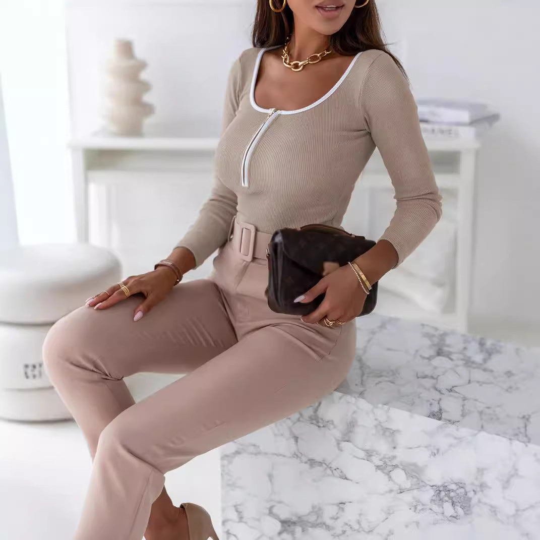 Opgrader din garderobe med vores dames langeærmede rib bodysuit med lynlåsdetaljer fra Stilla. Denne stilfulde, men komfortable bodysuit har en elegant lynlås foran, der muliggør justerbar brug og alsidige stylingmuligheder. Lavet af et blødt, ribbet stof, smigrer dette stykke perfekt dine kurver og giver komfort hele dagen.