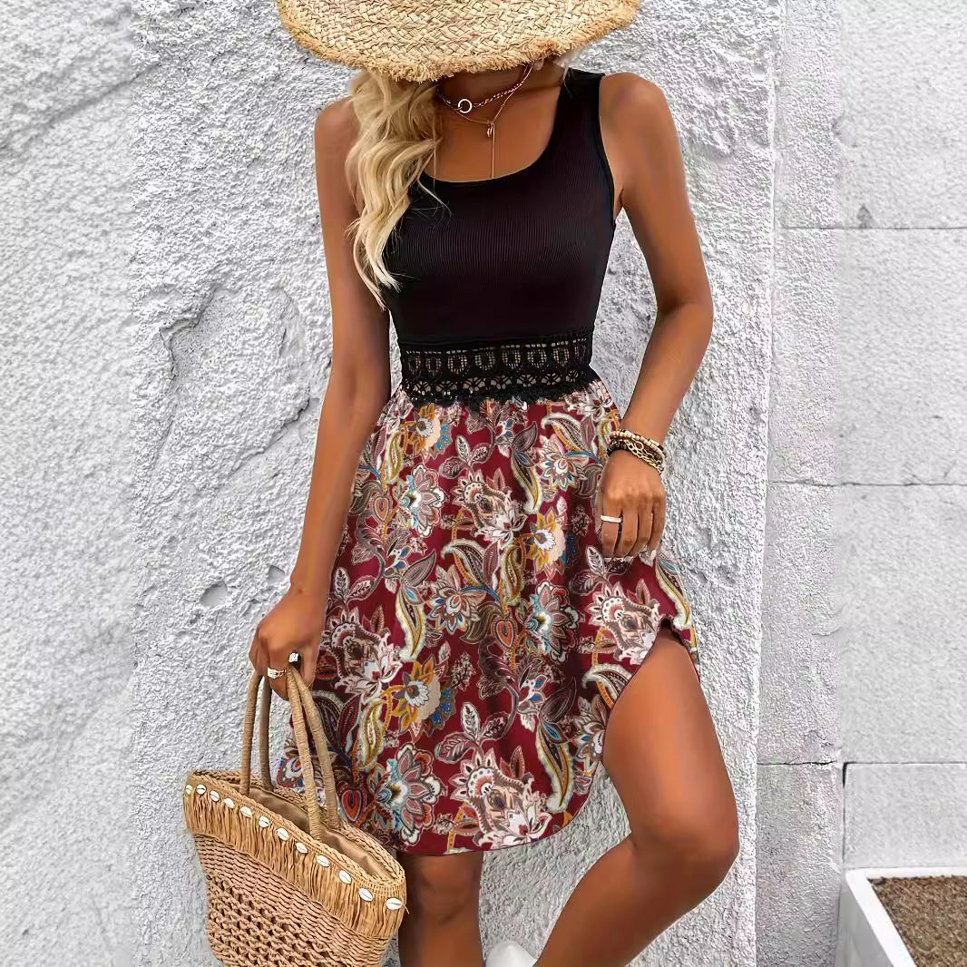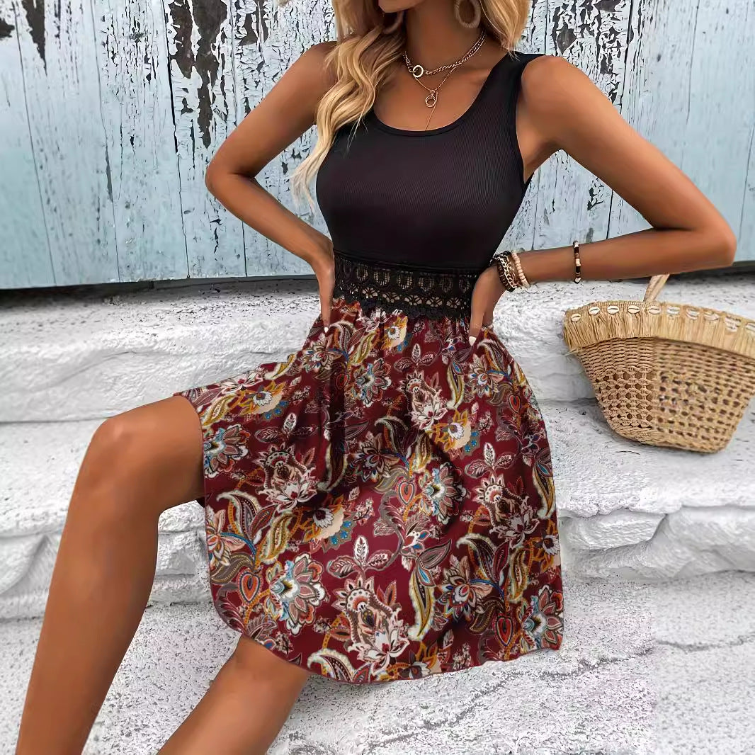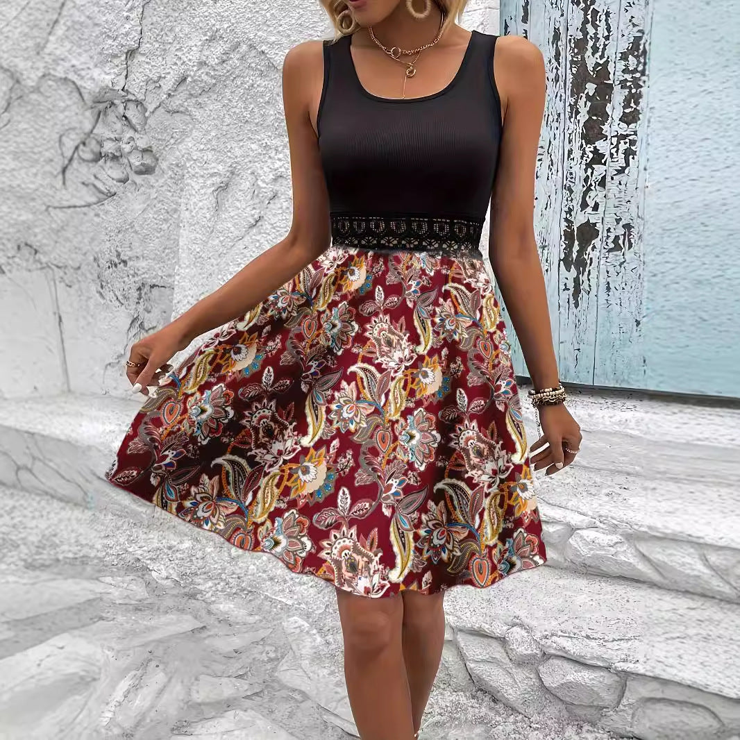 Træd ind i stilen med vores dames A-linje kjole med blomsterprint fra Stilla, designet til dem der søger en perfekt blanding af elegance og komfort. Denne kjole har et stilfuldt ribbet overdel, der glider sømløst over i en livlig blomsterkjole og skaber en fantastisk silhuet, der passer til enhver lejlighed.