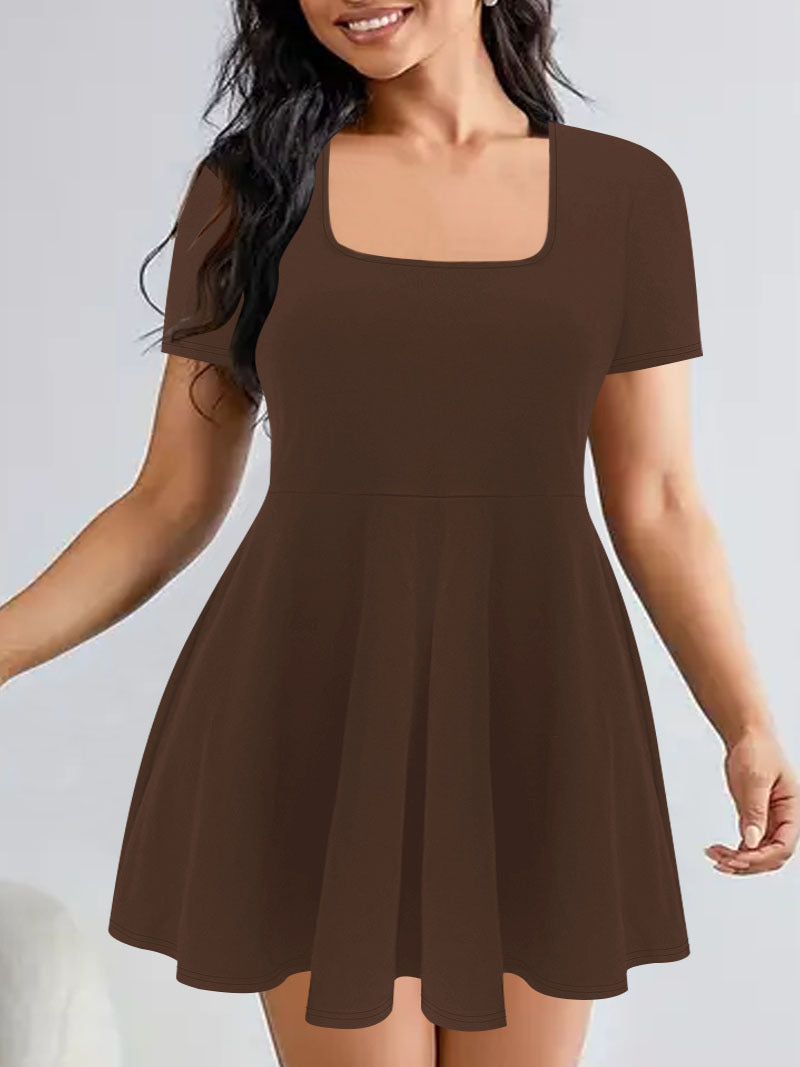 Vi præsenterer vores dames A-linje mini-kjole med firkantet udskæring, designet til den moderne kvinde, der sætter pris på både stil og komfort. Fremstillet af et højkvalitets, åndbart stof, giver denne kjole en blød følelse på huden og sikrer samtidig en flatterende silhuet.
