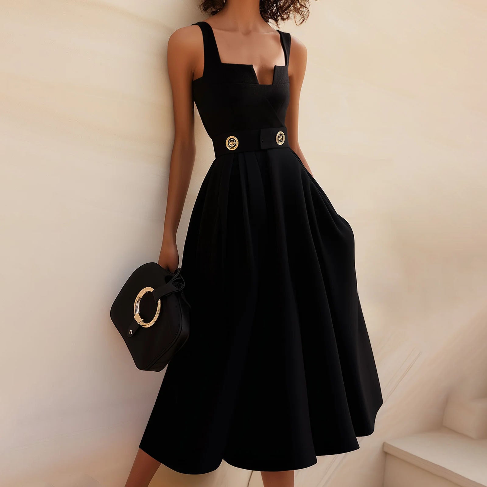 Opgrader dit garderobe med vores fantastiske dames A-formede midi-kjole, der har en stilfuld firkantet udskæring og et smukt designet dekorativt bælte. Perfekt til både fritidsaktiviteter og særlige anledninger, er denne kjole et alsidigt supplement til enhver fashionista.