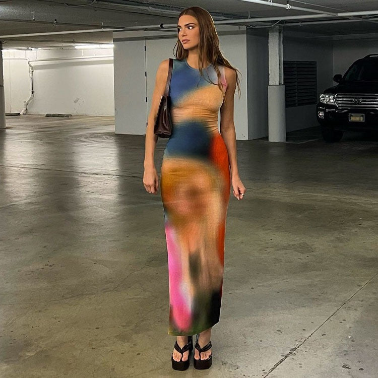 Træd frem med et iøjnefaldende design med Maxikjolen med abstrakt kunst til kvinder fra Stilla, en perfekt blanding af komfort og moderne stil.