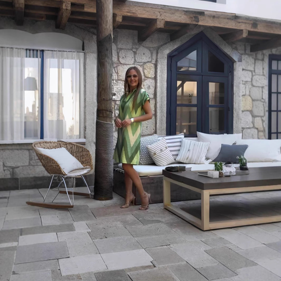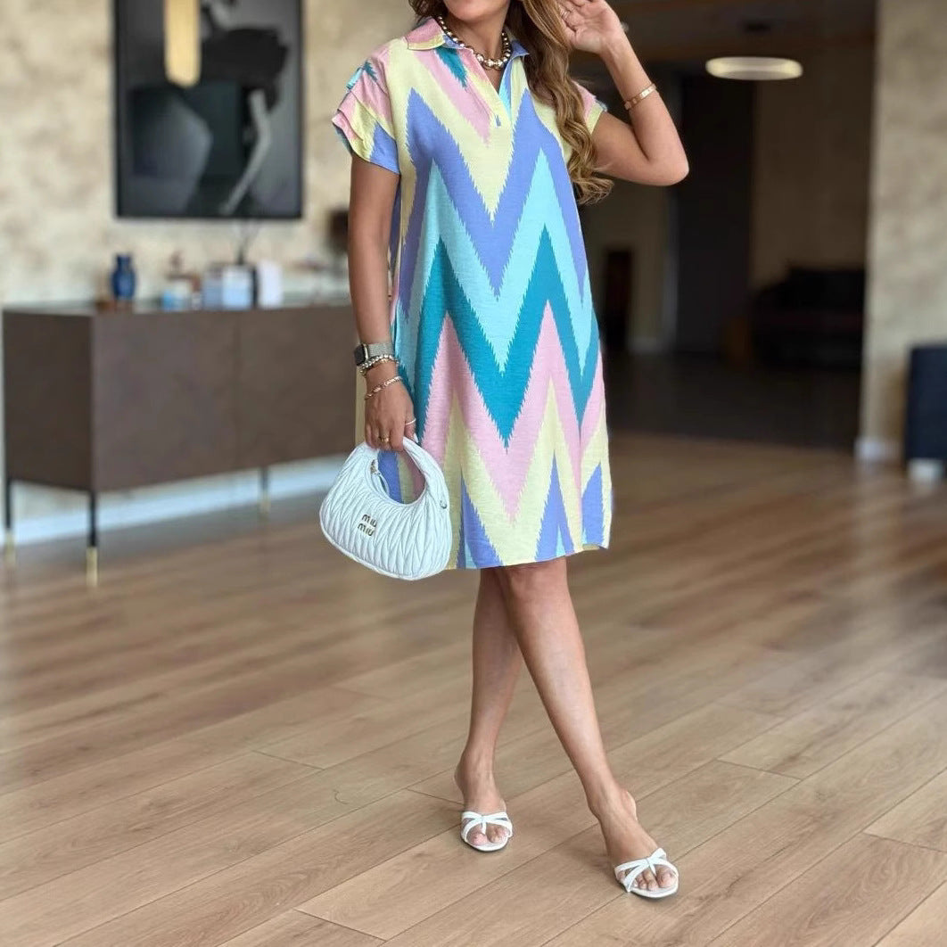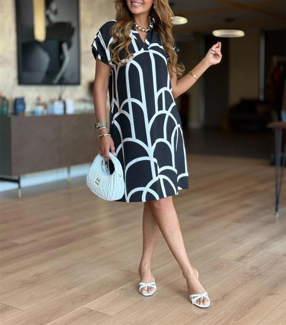Sæt et præg med dame A-linje mini kjolen med abstrakt tryk fra Stilla, hvor moderne design møder ekstraordinær komfort.