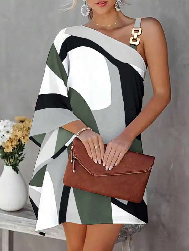 Uanset om du skal til en havefest eller en middag, er denne kjole det perfekte valg til et stilfuldt og ubesværet outfit. Tilføj Stilla' Damen-Abstract-Print-En-Skulderkjole til din samling og sæt et statement, uanset hvor du går!