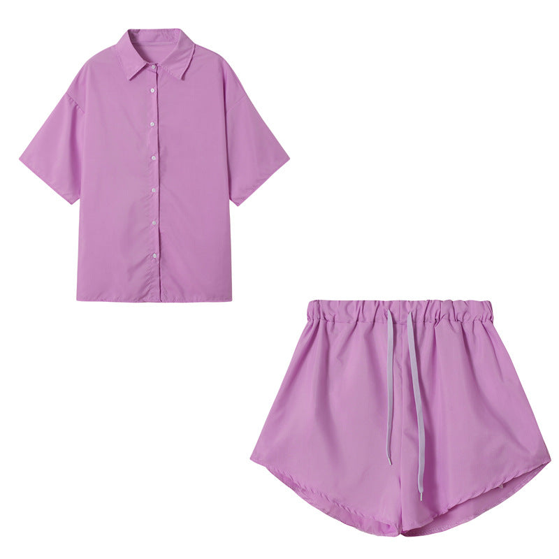 Oplev en kombination af stil og komfort med vores dames afslappede shortsæt, perfekt til afslapning eller afslappede udflugter. Dette sæt består af en oversized skjorte med knaplukning og matchende shorts, der er designet til maksimalt komfort.