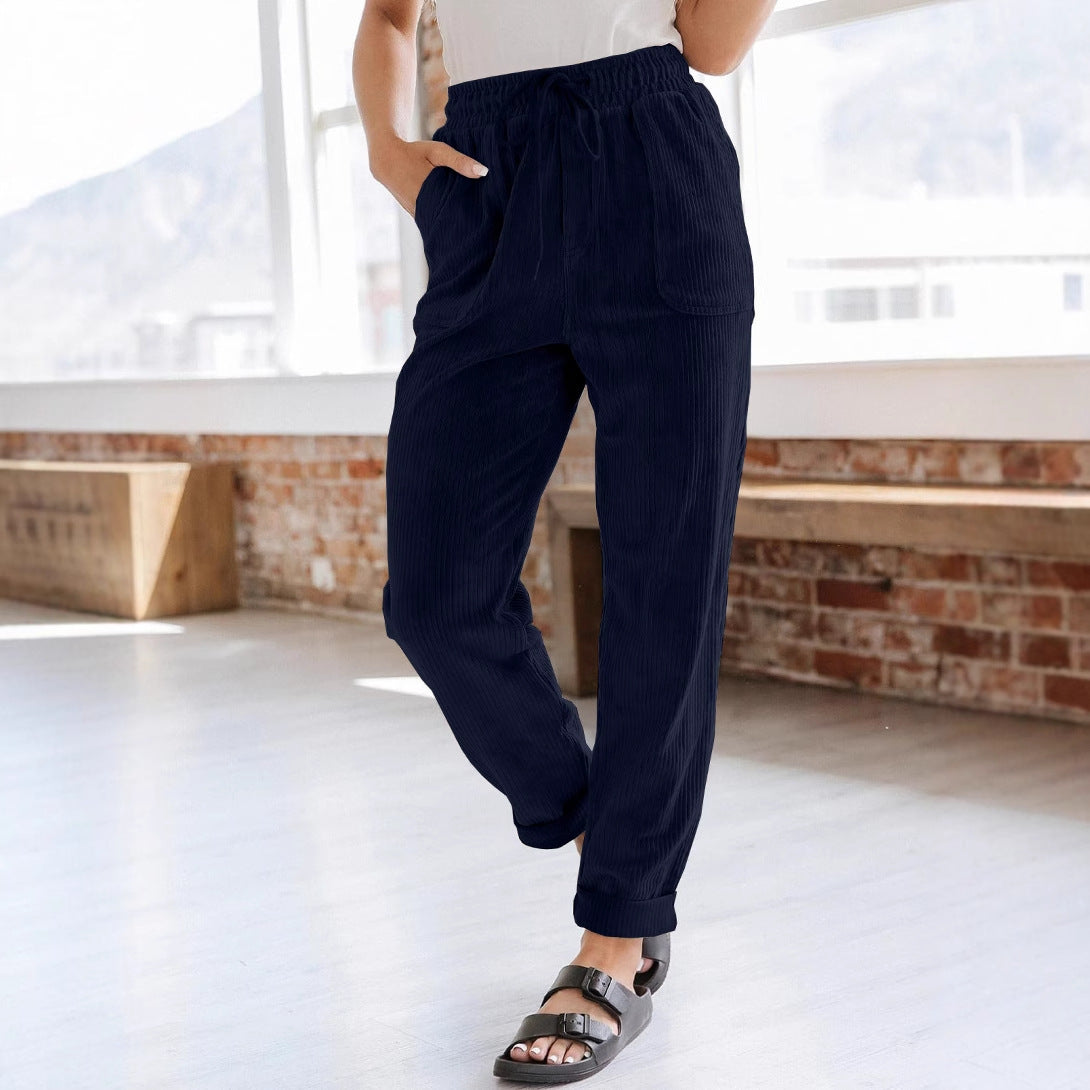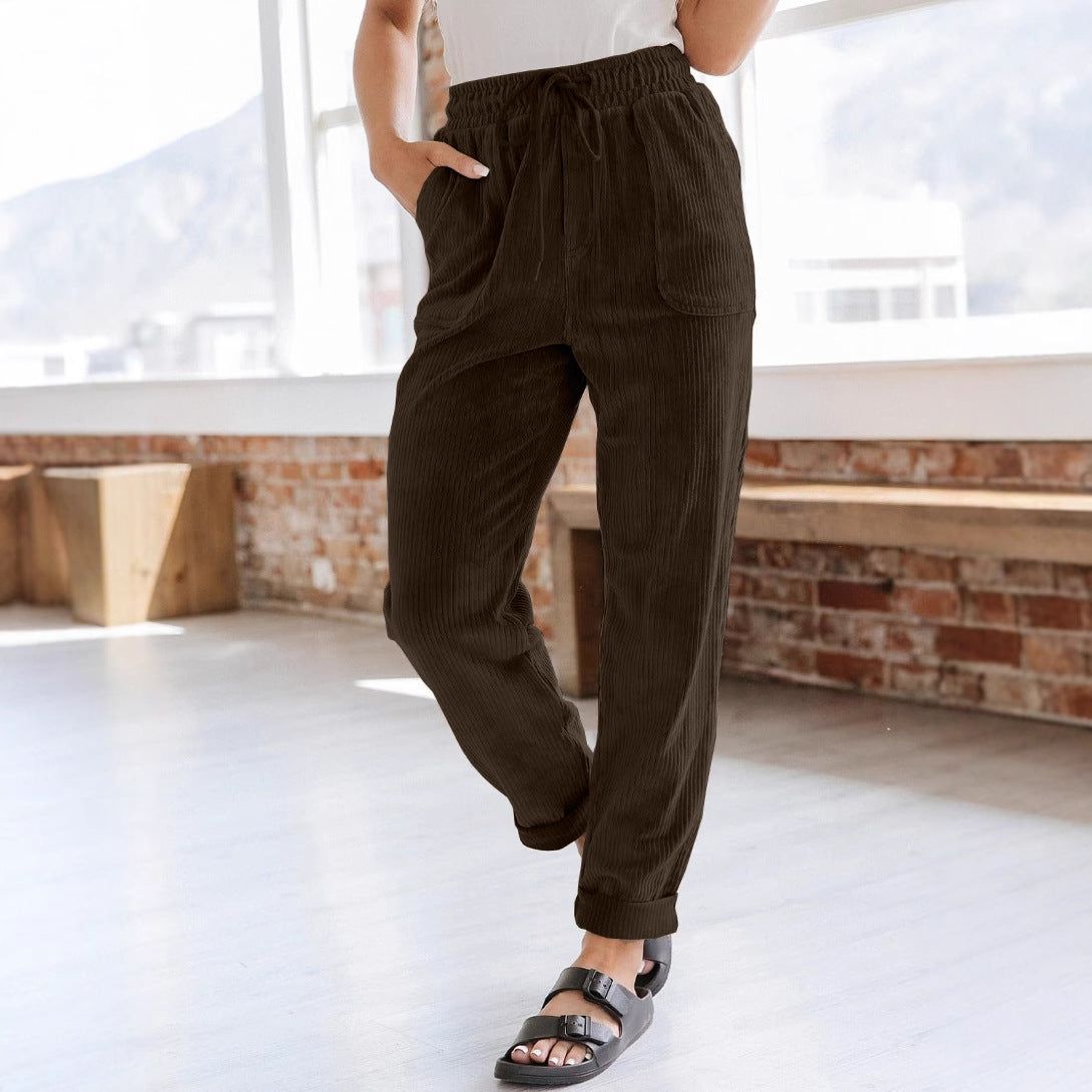 Vi præsenterer den ultimative kombination af komfort og stil med vores dames afslappede fit corduroy-bukser Stilla. Designet til dem, der værdsætter både mode og funktionalitet, er disse bukser lavet af kvalitets cord, der tilbyder en blød tekstur, som føles fantastisk på huden.