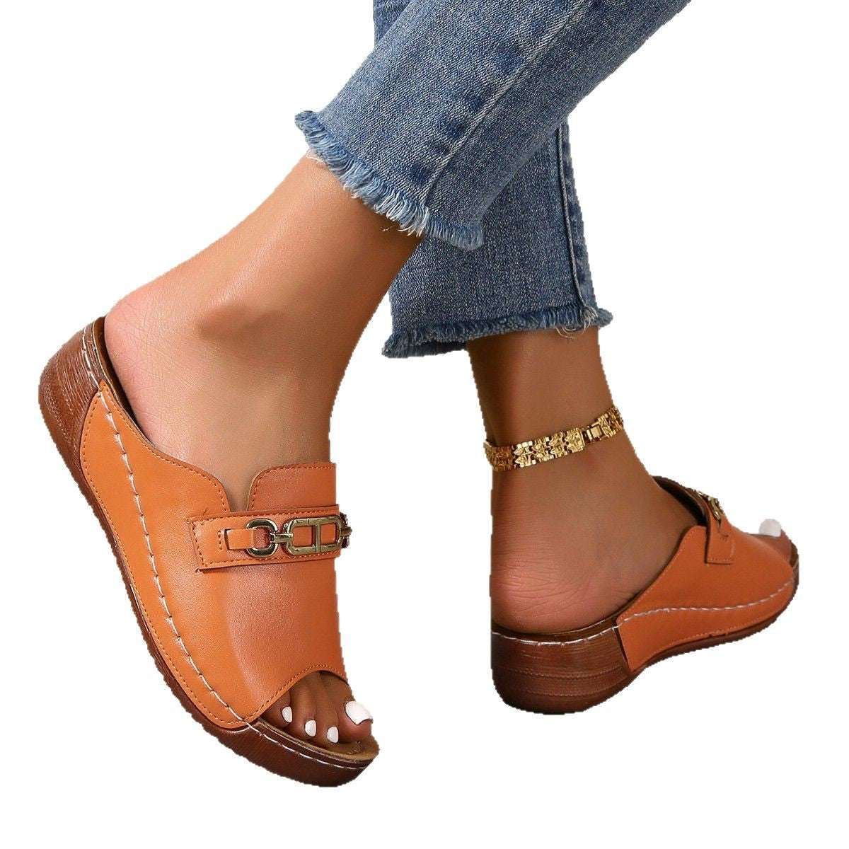 Vi præsenterer den perfekte blanding af stil og komfort med disse åbne tå sandaler for damer fra Stilla. Disse sandaler, der er designet til den moderne kvinde, har et stilfuldt åbent tådesign, der lader dine fødder ånde og samtidig viser din pedicure frem. Det luksuriøse overmateriale lavet af kunstlæder er ikke kun apetiserende at se på, men også holdbart og let at vedligeholde. Udstyret med et stilfuldt kædeaccent løfter disse sandaler ethvert afslappet eller semi-formelt outfit.