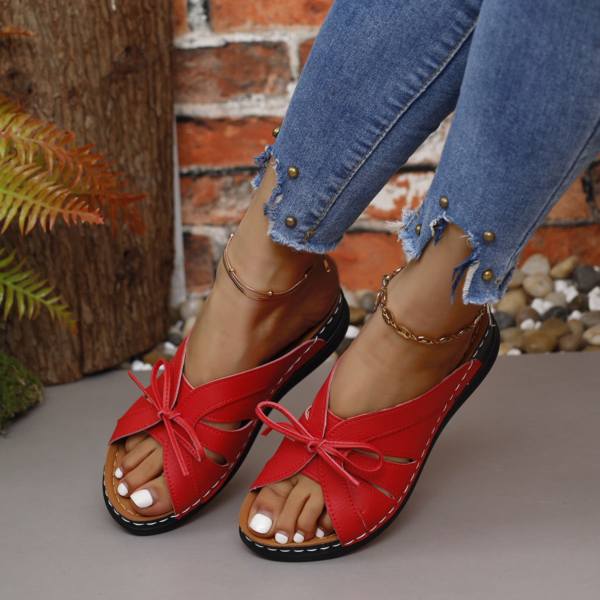 Træd ind i denne sæson med stil med Åben-Tå Slipper med Sløjfe Detalje fra Stilla, hvor komfort møder moderne mode!
