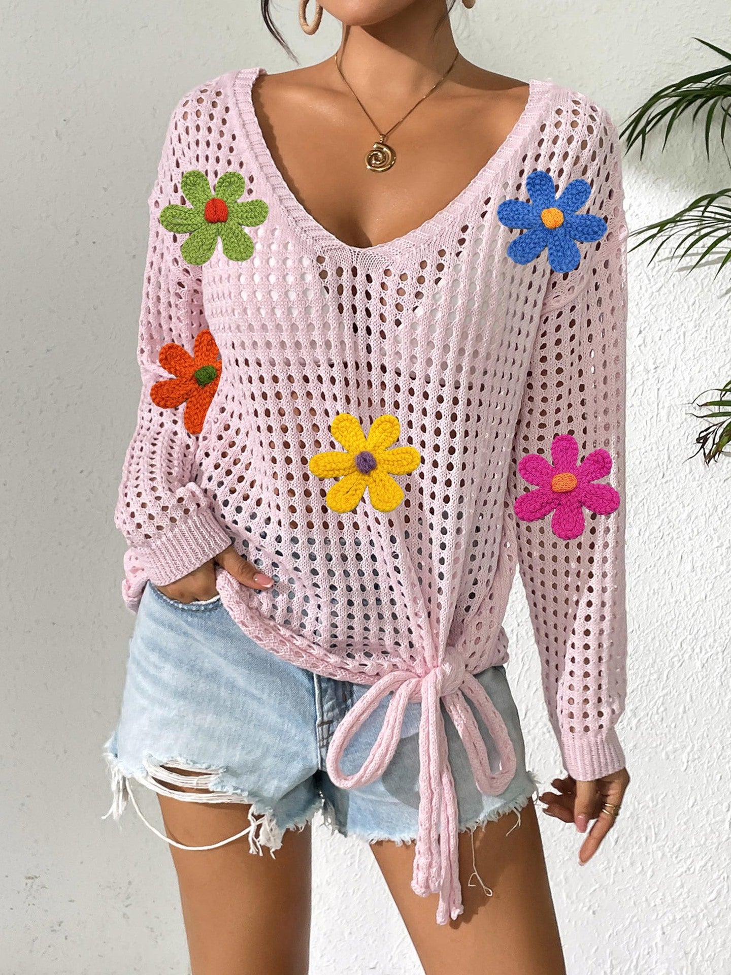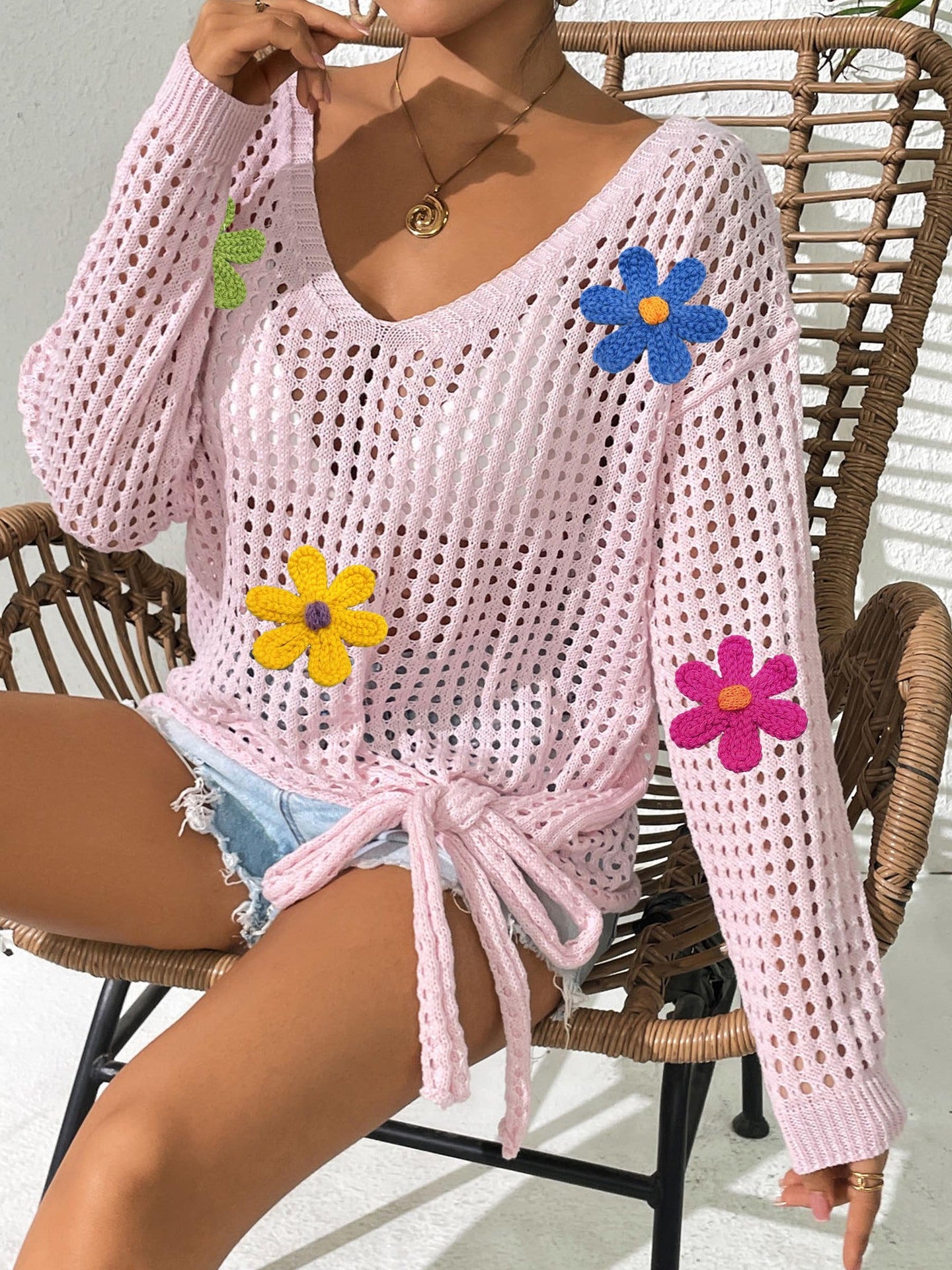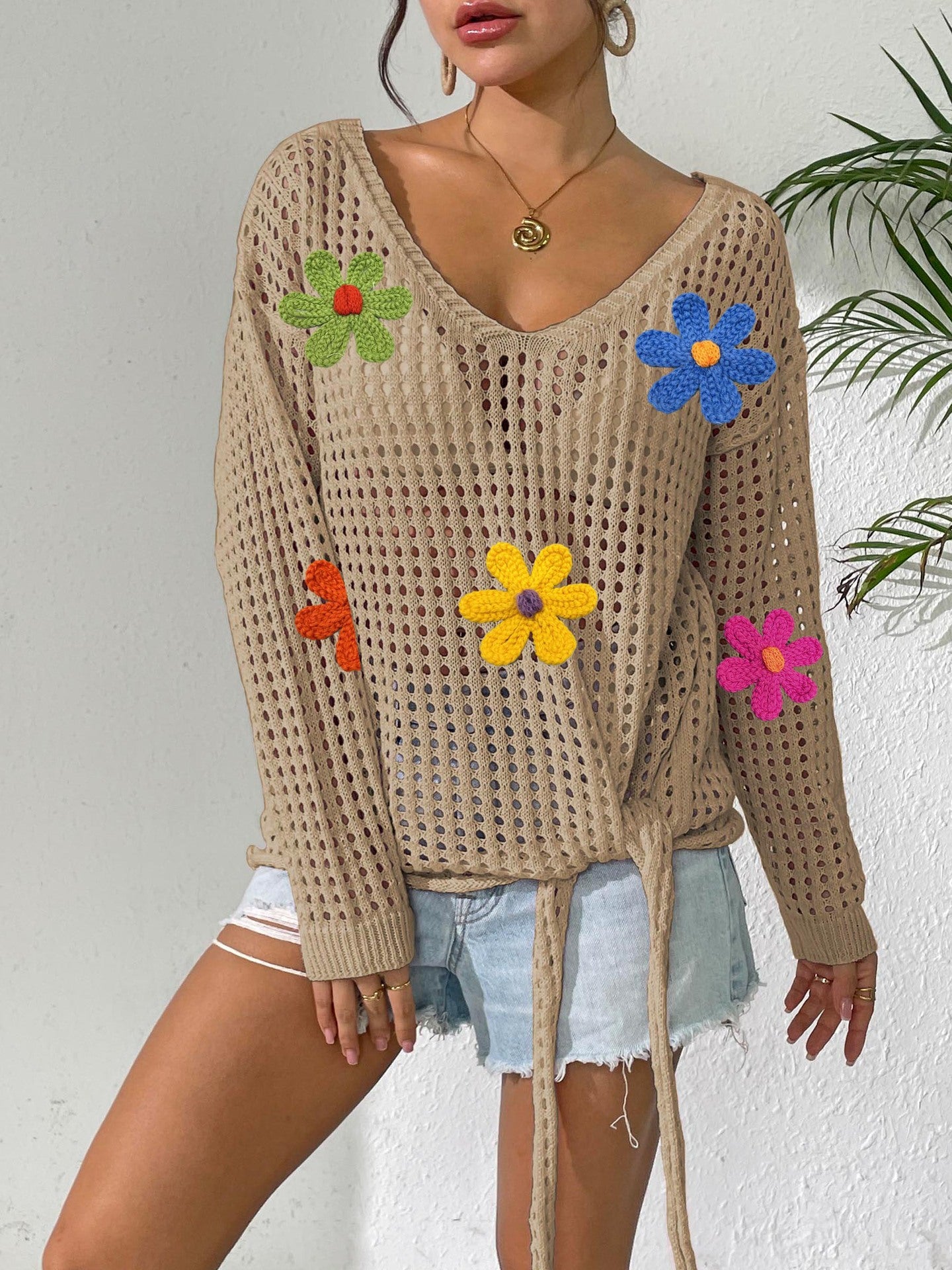 Tag din stil til et nyt niveau denne sæson med vores Åben Vævet Blomster Strikpullover, perfekt til at give ethvert outfit et strejf af farve og tekstur. Kombiner den med jeansshorts for et afslappet look eller bær den over dit badetøj for et strandklar look.