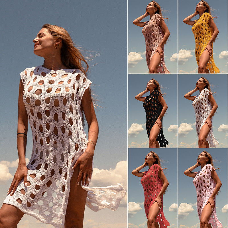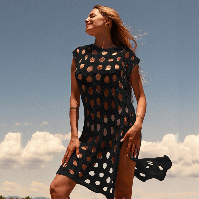 Uanset om du soler dig eller går langs kysten, er Stilla' åbne strikket strandkjole til kvinder den perfekte blanding af funktionalitet og stil. Få din i dag og vis din fashionable strandvibe!