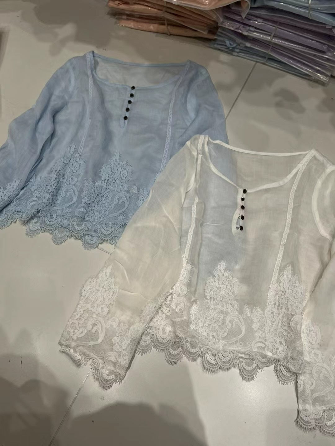 Berig din garderobe med vores dame-spidsbluse Stilla, en ideel blanding af stil og komfort. Dette fængslende tøjstykke tilbyder fine spidsdetaljer, der giver ethvert outfit et feminint præg og et strejf af elegance.