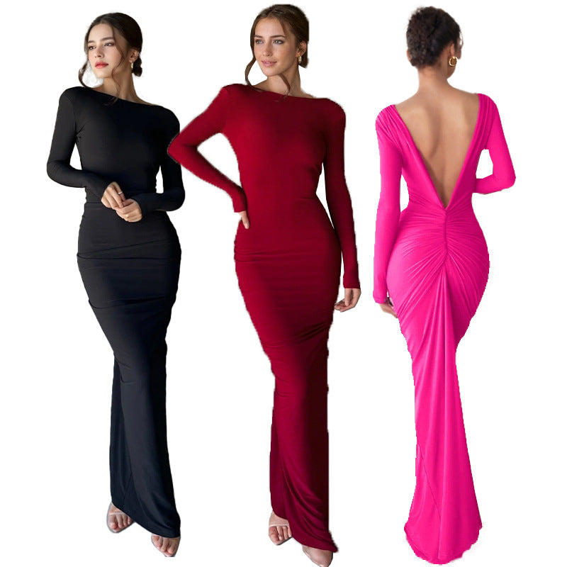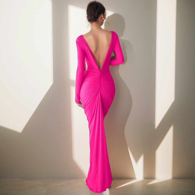 Sæt dit præg med den eksklusive Deep V-Neck Ruched Evening Gown fra Stilla og strål som aldrig før!