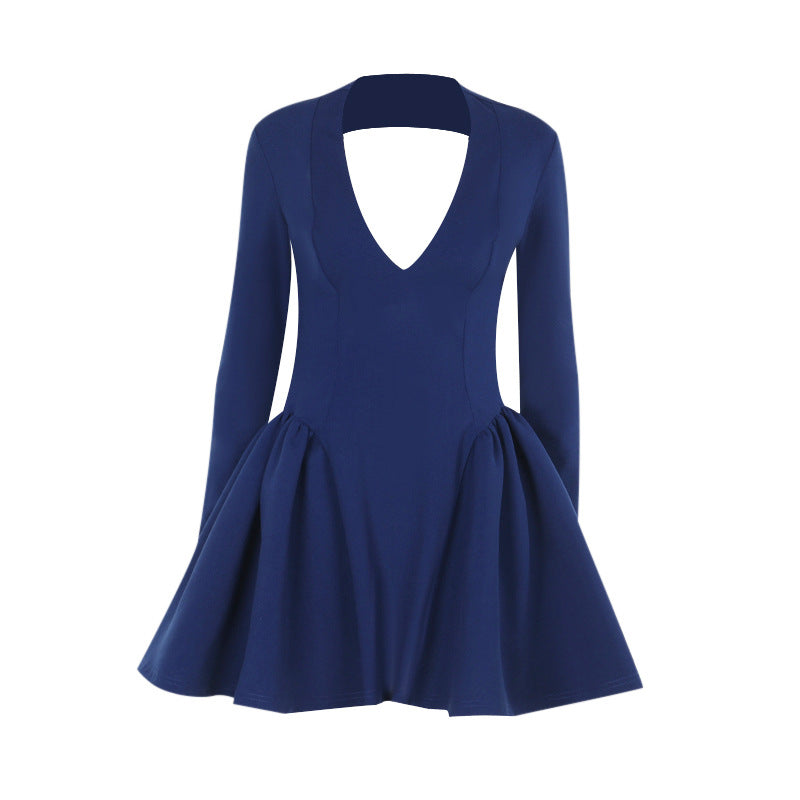 Oplev den højeste elegance med vores dames elegante A-linje mini-kjole, der imponerer med en spændende dyb V-udskæring. Denne fortryllende kjole er ideel til enhver lejlighed og forener ynde med et legende touch.