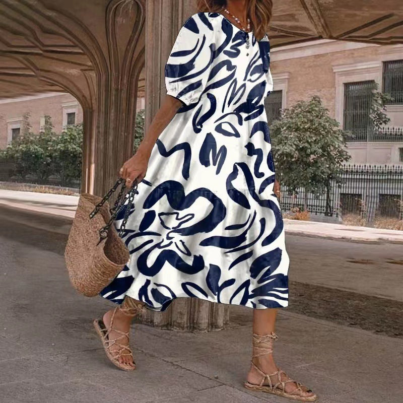 Sig farvel til garderobedilemmaer og hej til ubesværet elegance med denne stilfulde blomstrede midi-kjole, der er designet til at opfylde dine modeønsker!