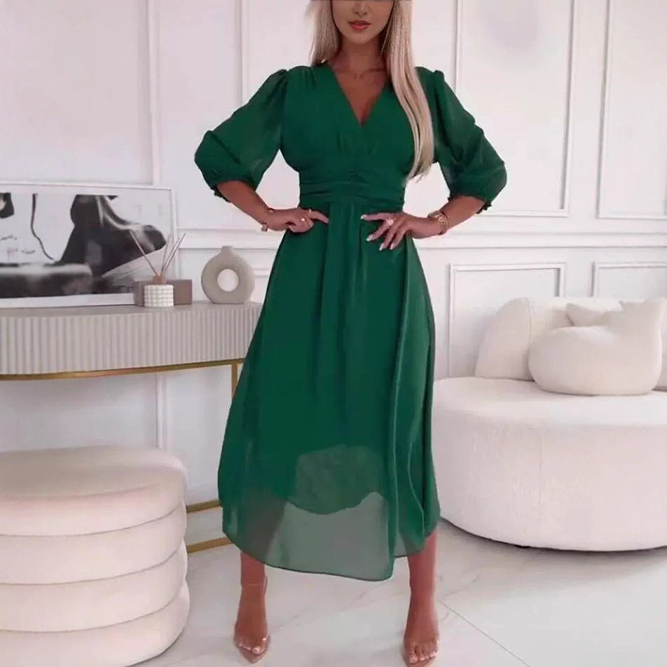 Oplev den perfekte kombination af stil og elegance med vores elegante chiffon indpakningskjole til damer fra Stilla. Denne betagende kjole har et flatterende indpakningsdesign, der fremhæver din figur og samtidig giver en behagelig pasform. Det lette chiffon-stof sikrer åndbarhed og gør det perfekt til begivenheder i varmt vejr. Med stilfulde pufærmer og en delikat V-udskæring er denne kjole designet til at fange blikket ved enhver lejlighed.
