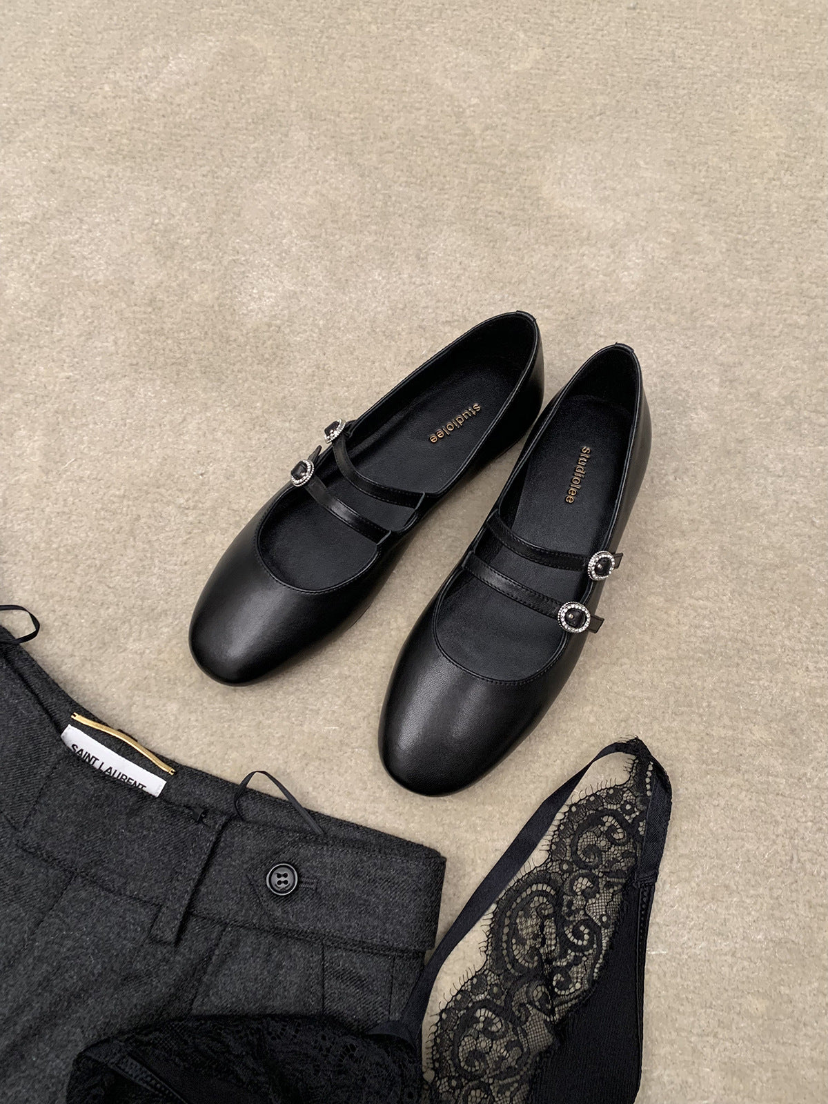 Oplev den perfekte kombination af elegance og komfort med vores stilfulde Mary Jane ballerinaer med dobbelt rem og rhinestones til damer. Fremstillet af materialer af høj kvalitet, har disse ballerinaer et stilrent design med dobbelt rem, der er prydet med eksklusive rhinestone-accenter og giver ethvert outfit et strejf af glamour.