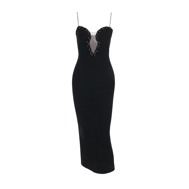 Opdag din indre ynde med vores fortryllende Dame Elegant Aftenkjole med dyb udskæring Stilla. Denne ekstraordinære kjole imponerer med en markant dyb udskæring, der er prydet med kunstneriske perleaccenter, som på vidunderlig vis reflekterer lyset og gør den ideel til festlige lejligheder og gallabegivenheder.
