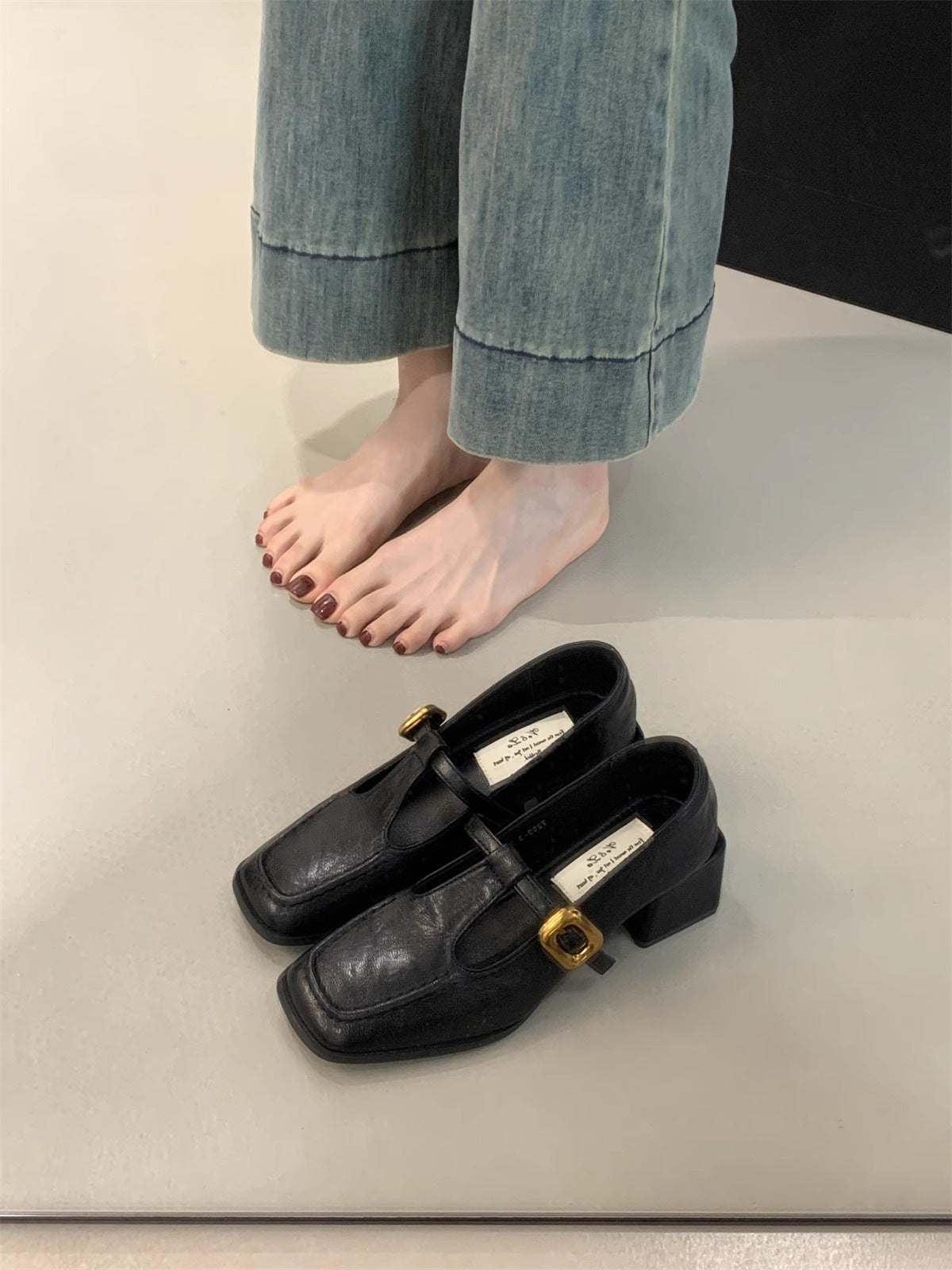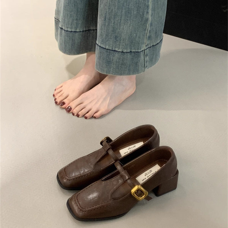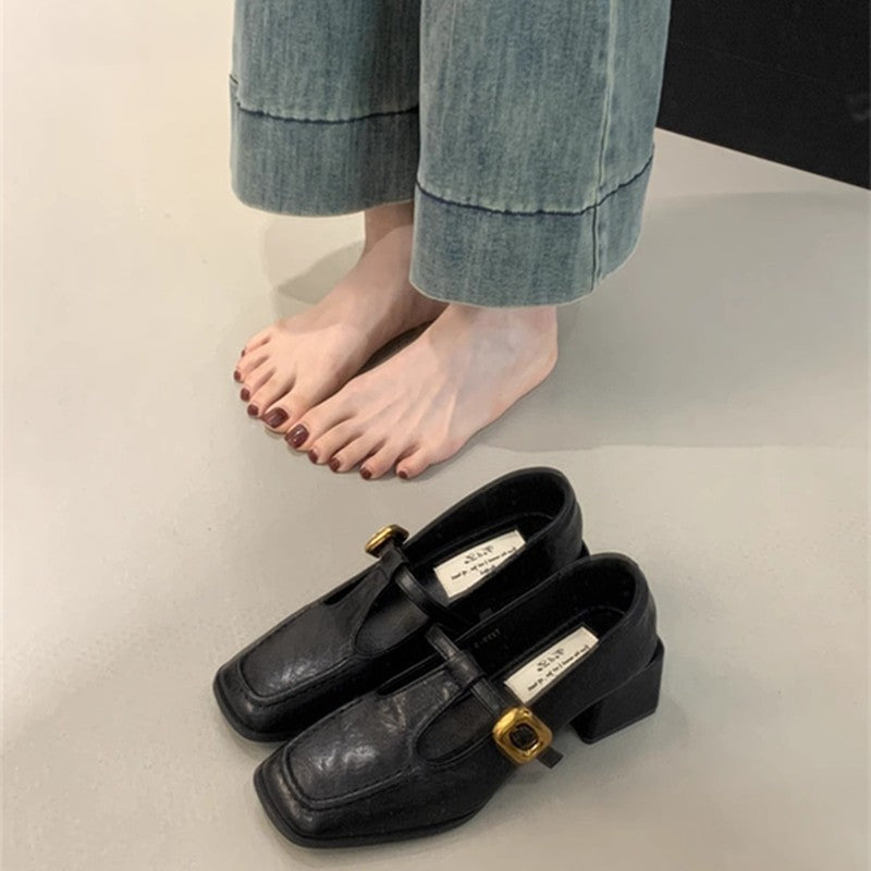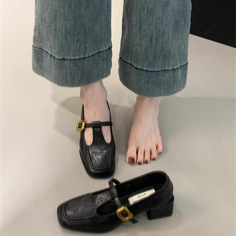 Træd ind i tidløs elegance med vores elegante, firkantede T-strop blokhæle til damer, der er designet til at berige din garderobe. Disse udsøgte sko har en raffineret firkantet tåform, der giver en moderne drejning til en klassisk stil. T-stropdesignet er ikke kun fashionable, men sikrer også et sikkert fit hele dagen.