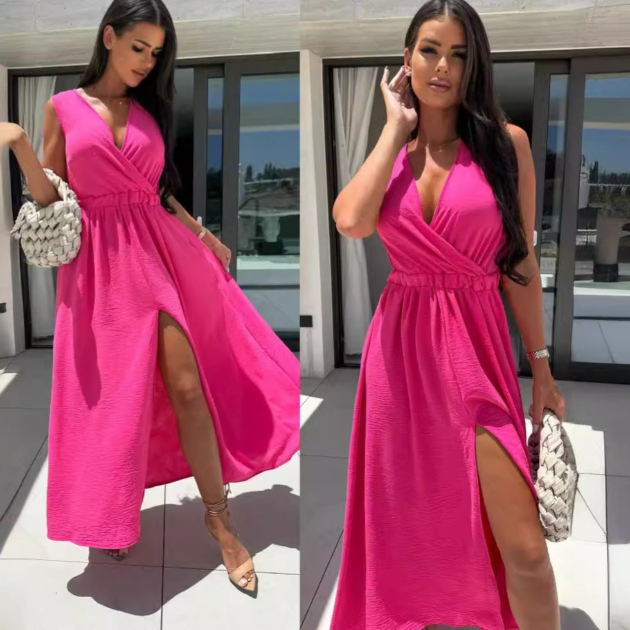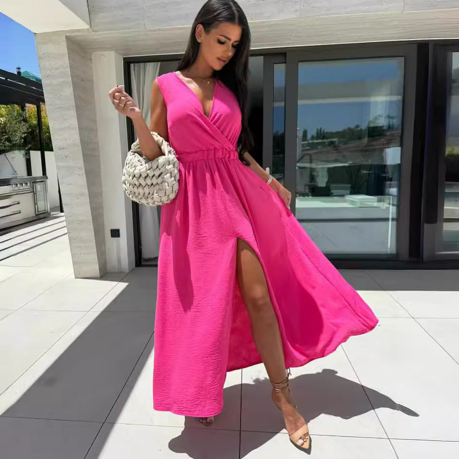 Kombiner den med dine yndlingshæle eller sandaler for at fuldende looket. Oplev elegance og stil med Stilla' elegante dame-maxikjole med høj slids - et uundgåeligt supplement til din garderobe denne sæson!