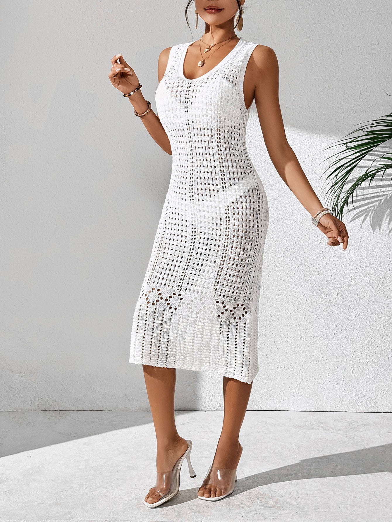 Gå ikke glip af dette must-have til sæsonen. Den elegante hæklede midikjole er perfekt til solrige dage, hvor du vil se fantastisk ud og samtidig føle dig afslappet. Tilføj den til din indkøbskurv i dag!